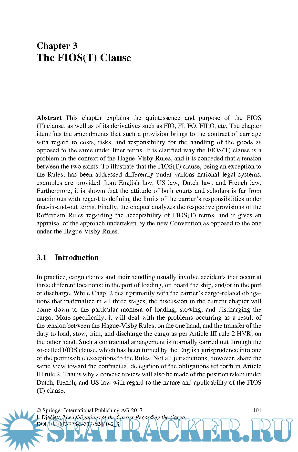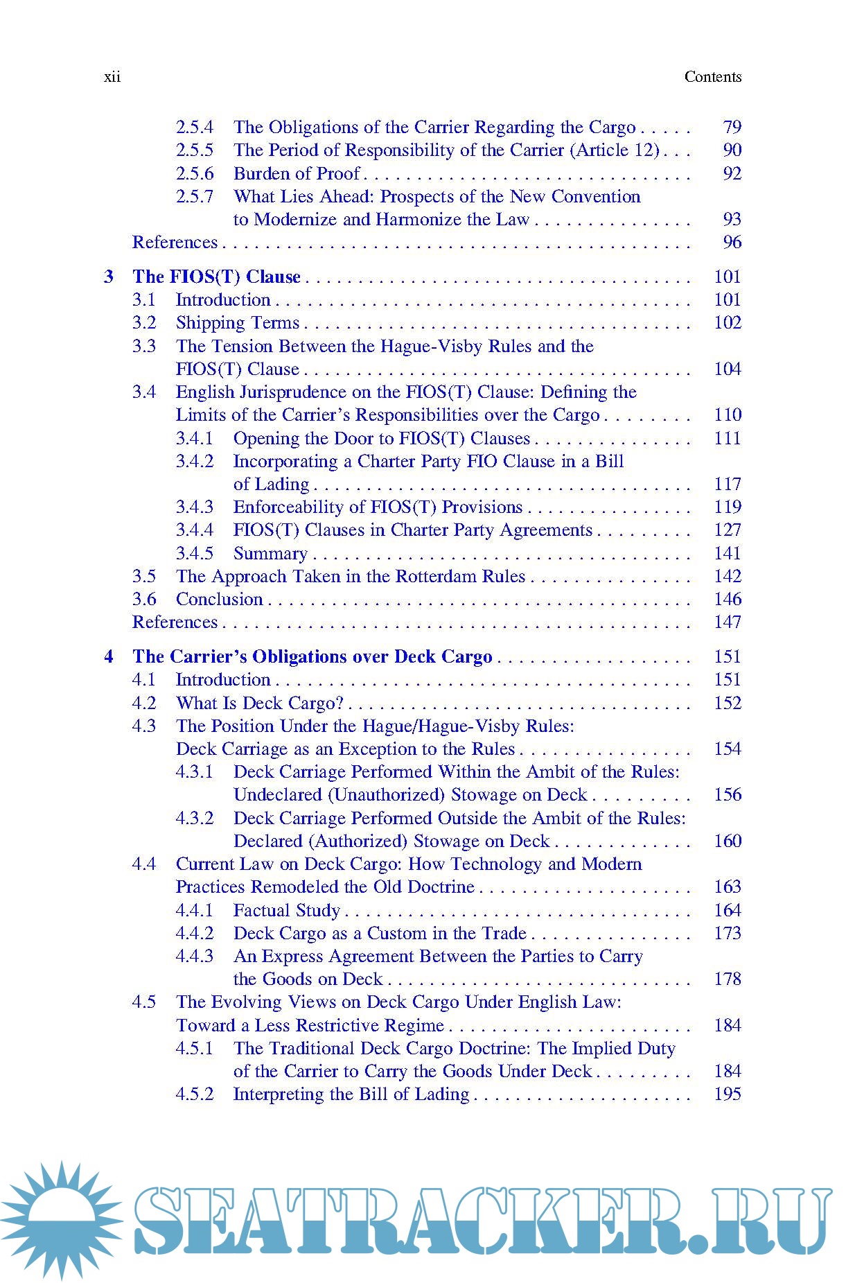 The book is divided into six chapters, which gradually reveal the complexity of the topic. Chapter 1 provides a thorough introduction to the two main transport documents in use, and to the basic logic behind shipping, sea-going trade and related national and international legislation. In turn, Chapter 2 presents an overview of the relevant provisions of the Hague-Visby Rules. Chapters 3, 4 and 5 examine the problems arising out of the insertion of a FIOS(T) clause in the contract of carriage; the carriage of goods on deck; and the carriage of goods in containers, respectively. Lastly, Chapter 6 provides an overall conclusion on the legal status quo and current practice, as well as future prospects.