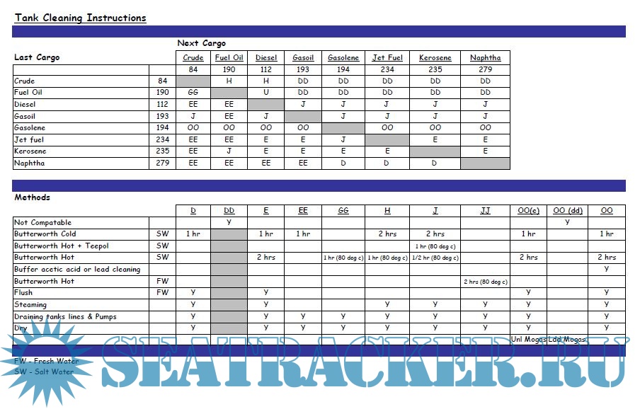 Description: Oil tanker vessels engaged in the carriage of oil products frequently need to prepare their tanks for loading of cargo that it is different than the one previously carried. I attach some cleaning recommendation guides that have been useful to me which are the following