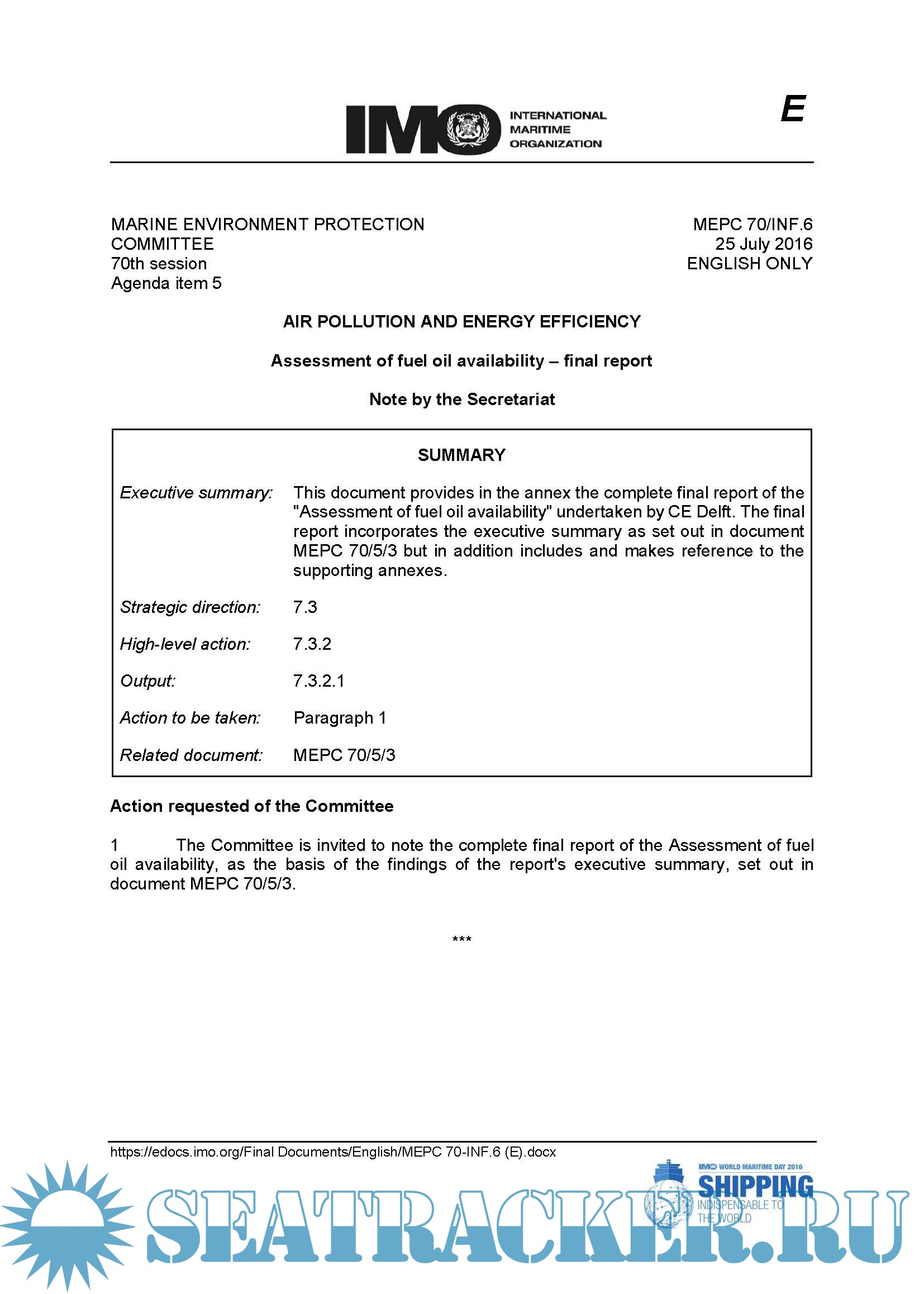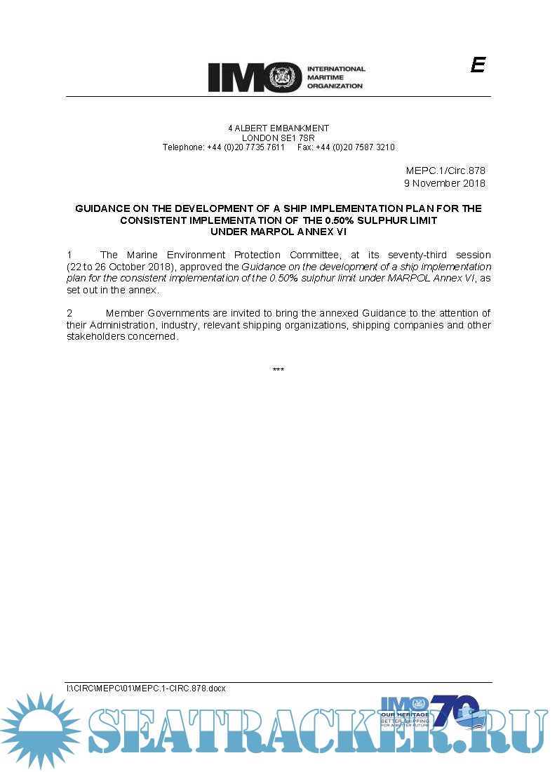 Description: The purpose of these Guidelines is to ensure consistent implementation of the 0.50% sulphur limit under MARPOL Annex VI. These Guidelines are intended for use by Administrations, port States, shipowners, shipbuilders and fuel oil suppliers, as appropriate.