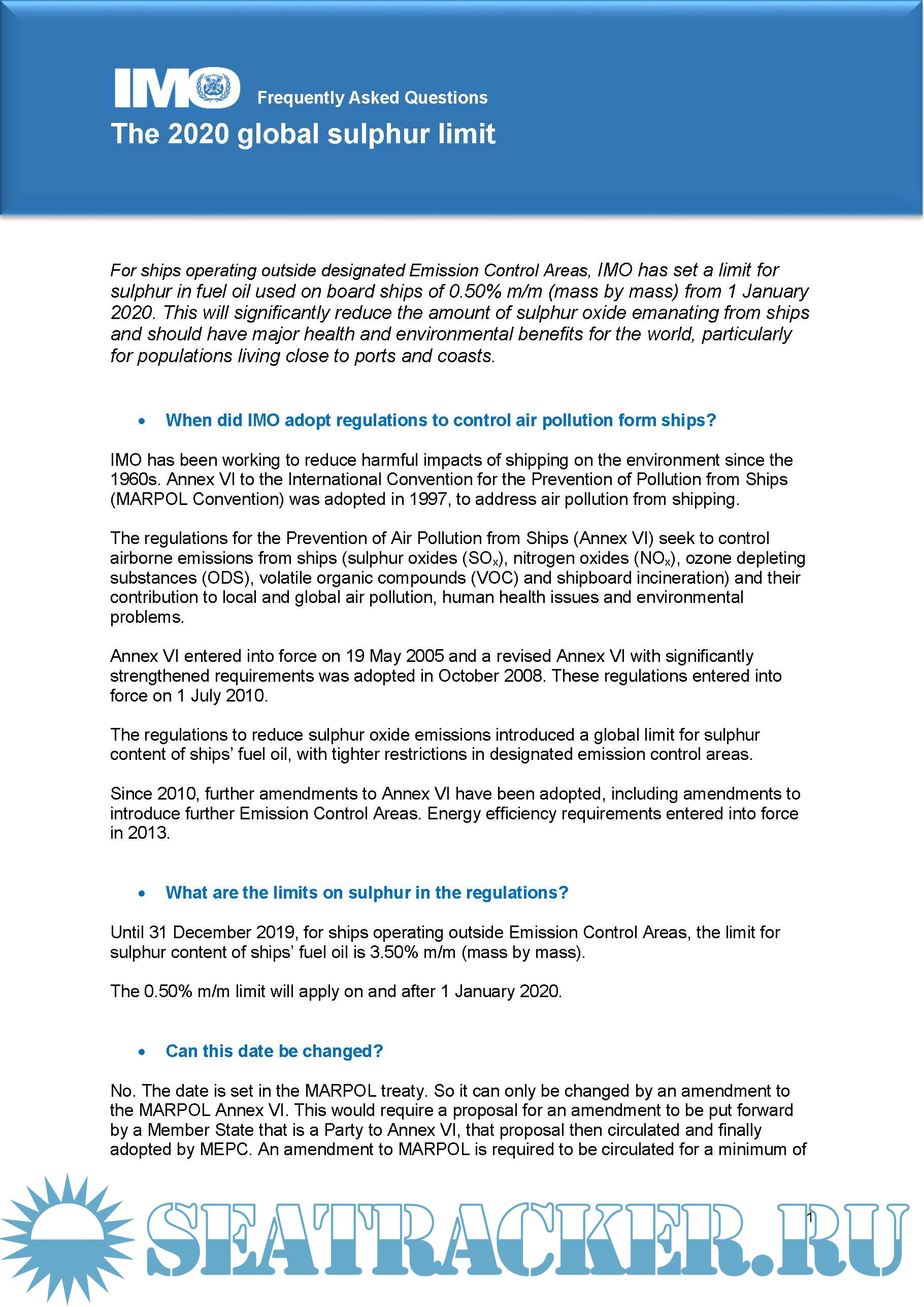 IMO 2020 Sulphur Limit FAQ + Relevant IMO Resolutions