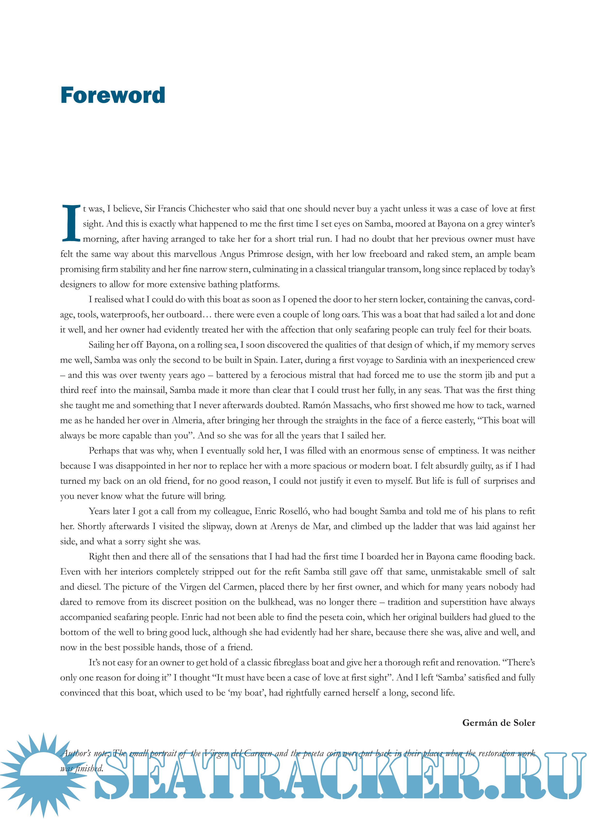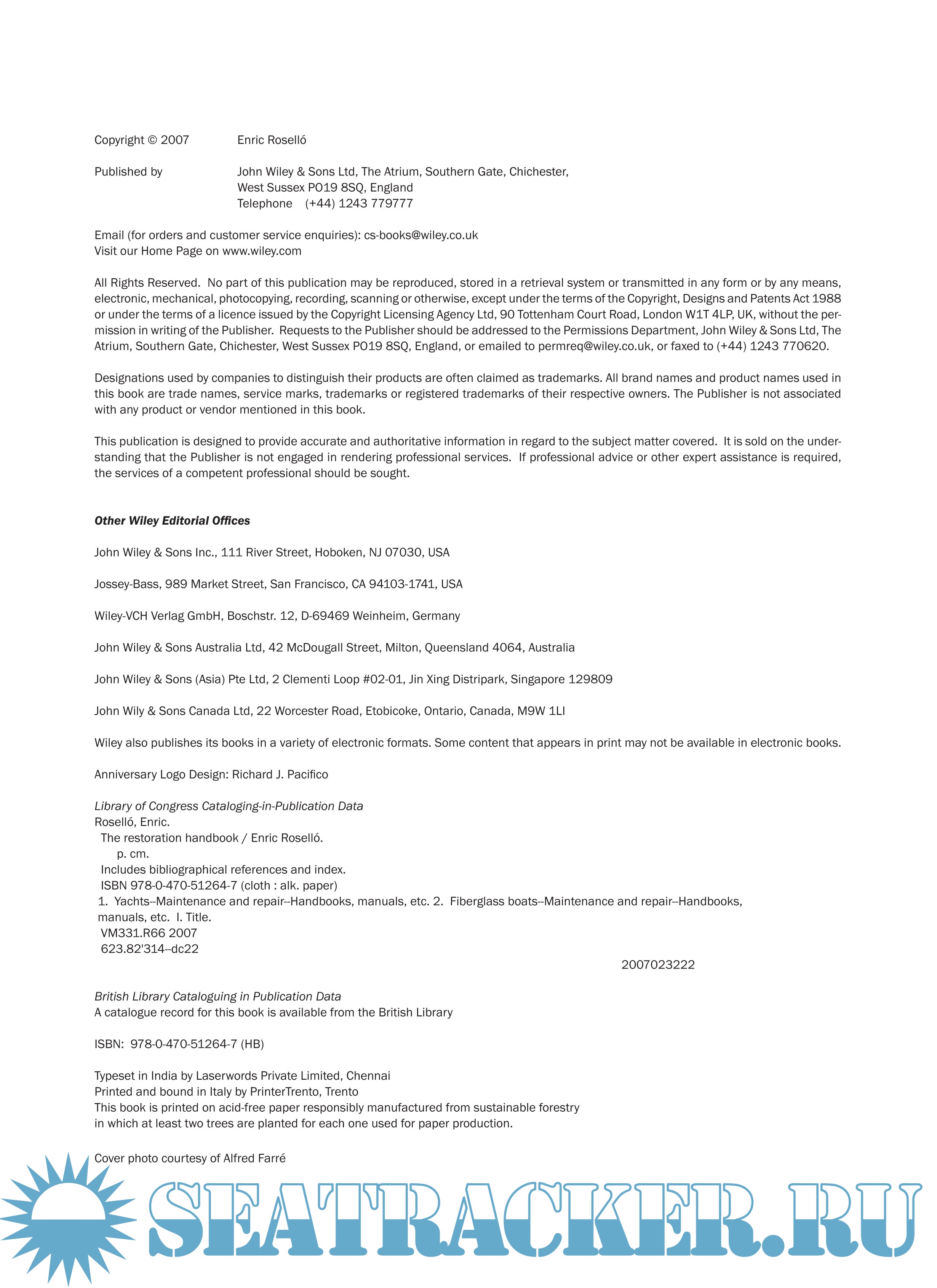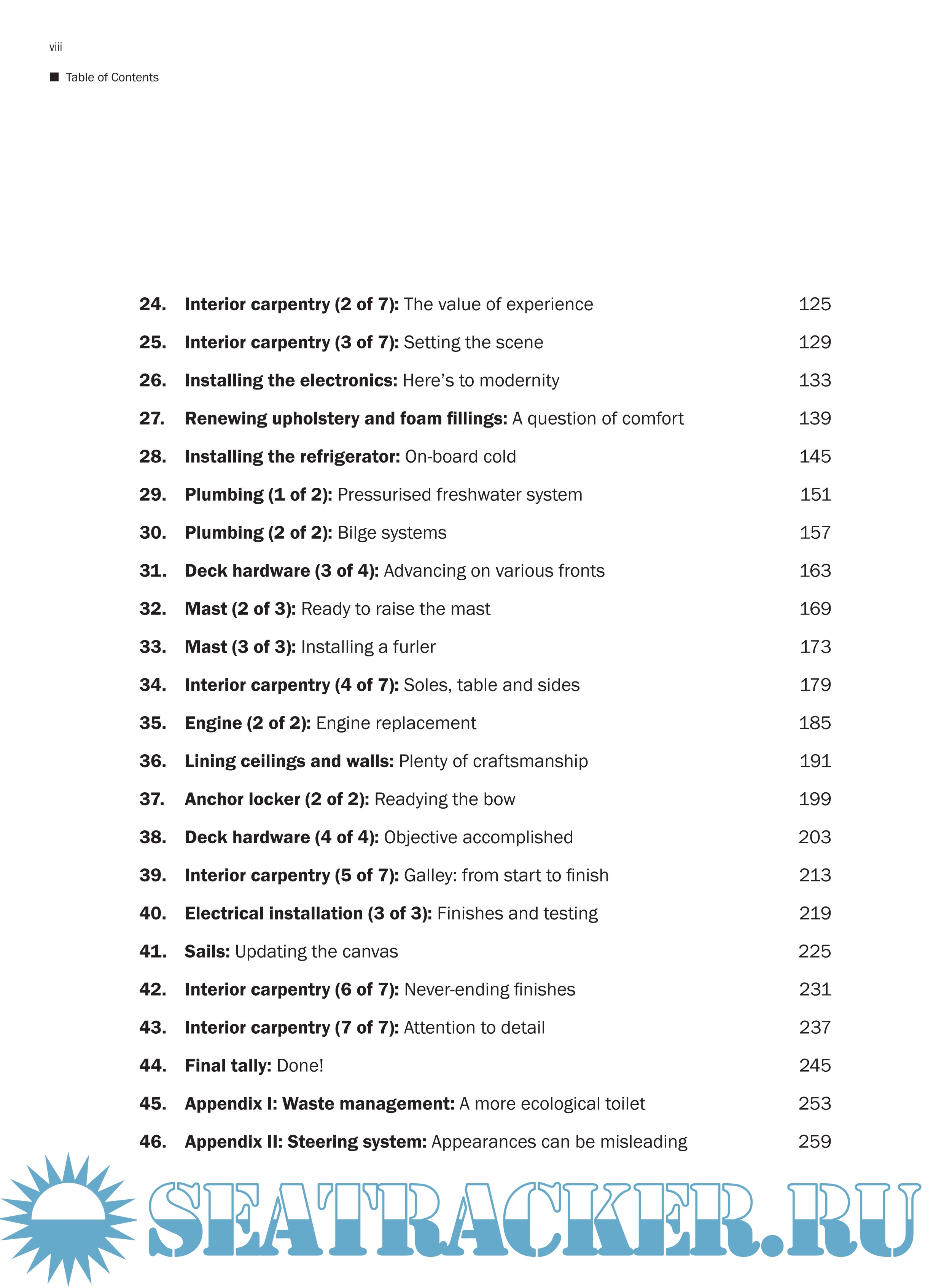 Description: Restoring a fibreglass yacht is not something for the faint-hearted, even if you don’t intend to do all the work yourself (you still need to understand the processes to be gone through). But the satisfaction of the job well done, not to mention the possible cost savings on buying a new yacht, are immense. Nevertheless, it is not something that should be undertaken lightly and without careful consideration. That is where this book comes in, as Enric Roselló takes you through his restoration of a 30-year-old 40-foot yacht. Broken down into 46 chapters, Enric details the stages of his restoration in chronological order. For each he starts with an overview of the task and the thinking behind the approach he took. Just these introductory pieces alone are ideal for someone contemplating a restoration (of all or part of a boat) to read before making the final decision as to whether to go ahead. For those who decide to take on the challenge, each overview is followed by an in-depth step-by-step account of what they did, accompanied by numerous informative photo sequences (with over 800 colour photos in total). The material in this book would be invaluable both to boat owners who are considering a complete overhaul and to those who have one or two smaller jobs to do. All possible subjects are covered, including dealing with osmosis, the interiors, deck, rigging, electrics and electronics, plumbing, engine, galley, heads and much more. The author is very honest about the amount of work and commitment required and also offers advice about when to call in the professionals and when to consider doing the work yourself. Anyone contemplating a complete or partial restoration is advised to read this book beforehand, so you know what is ahead, and to follow its guidance if you to decide to proceed.