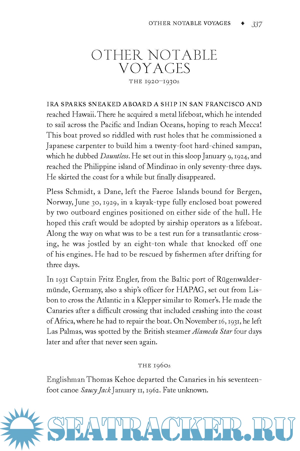 Description: This book contains more than seventy accounts of big adventures in small boats. In "A Speck on the Sea", William Longyard reaches back through five centuries to gather a collection of sea adventures in which the smallest, unlikeliest craft - and the daring individuals aboard them - completed extraordinary voyages against great odds. From canoes and small sailboats to a pair of strap-to-your-feet pontoons, the watercraft in these true stories make nearly as varied a collection as the mariners who piloted them. The intrepid seafarers and their feats of seamanship include: Ed Gillet's kite-powered transpacific kayak voyage Gladys Gradely's 1902 quest to become the first woman to solo the Atlantic; Ben Lecomte's swim across an ocean for love; Hugo Vihlen's 1968 ocean crossing in the 6-foot sailboat, April Fool; Peter Bird's tragic attempt to row across the Pacific; and, scores more. Whether driven by desperation, adventure, or a desire for fame and fortune, the risktakers in these stories show what vast oceans can be crossed in tiny contrivances by those who dare. The author spent six years researching this book, traveled to numerous maritime museums around Europe and the United States and interviewing a number of the sailors or their descendents.