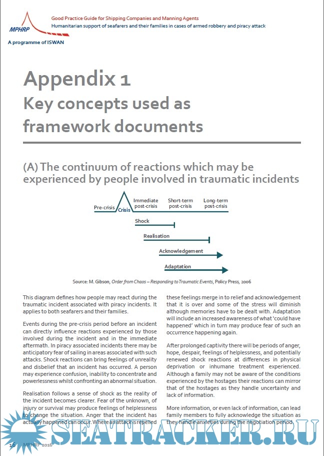 Year: 2016 Language: english Author: MPHRP & ISWAN Genre: Guide Publisher: The Maritime Piracy Humanitarian Response Programme (MPHRP) Edition: Version 2 Format: PDF Quality: eBook Pages count: 36 Description: Piracy and armed robbery continue to threaten the international shipping community. Despite diplomatic, military and other initiatives by governments and their agencies, and protective measures and other actions adopted by shipping companies, ships are still attacked and seafarers put at risk as they go about their legitimate business. While acknowledging the actions of governments, the United Nations, the International Maritime Organization, and the Contact Group on Piracy off the Coast of Somalia, it is recognised that more needs to be done to support seafarers and their families. Over 5,700 seafarers have been taken hostage in various incidents globally since 2007. In some cases the seafarers have been subject to prolonged captivity. Every day more than 100,000 seafarers experience anxiety while sailing in, or towards, dangerous waters. Their families share these worries too, often with a feeling of helplessness. Appropriate preparation provides benefits, increasing the resilience of seafarers exposed to incidents of piracy and armed robbery, and informing a correct awareness of the situation for seafarers and their families. Although piracy is defined in the 1982 United Nations Convention on the Law of the Sea (UNCLOS) as distinct from armed robbery, for the purposes of this guide the term ‘piracy’ is used throughout. Additional info: Good Practice Guide for Shipping Companies and Manning Agents.