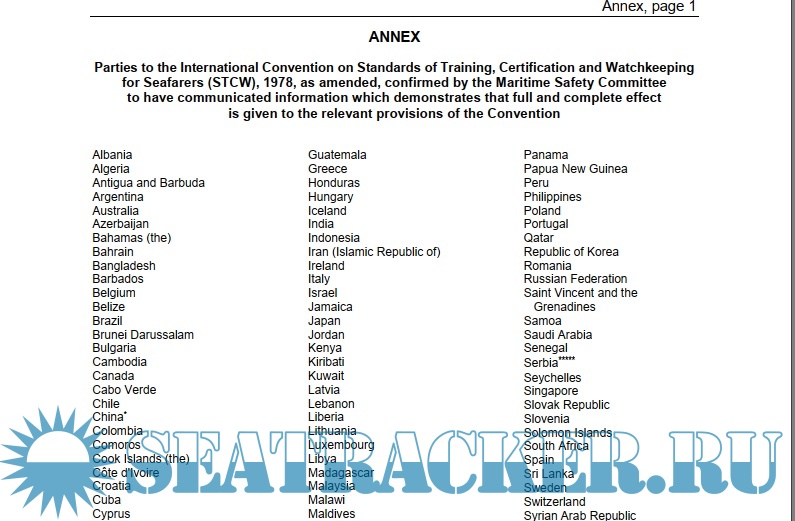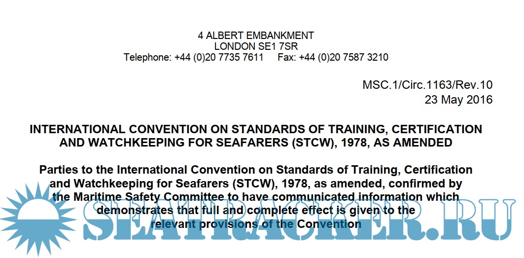 Parties to the International Convention on Standards of Training, Certification and Watchkeeping for Seafarers (STCW), 1978, as amended, confirmed by the Maritime Safety Committee to have communicated information which demonstrates that full and complete effect is given to the relevant provisions of the Convention