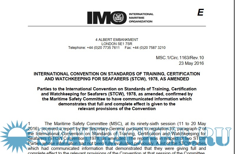 Year: 2016 Language: english Author: IMO Genre: Guide Publisher: IMO Format: PDF Quality: eBook Pages count: 65 Description: 1. MSC.1/Circ.1163/Rev.10 Parties to the International Convention on Standards of Training, Certification and Watchkeeping for Seafarers (STCW), 1978, as amended, confirmed by the Maritime Safety Committee to have communicated information which demonstrates that full and complete effect is given to the relevant provisions of the Convention 2. MSC.1/Circ.1595 E-Navigation strategy implementation plan.