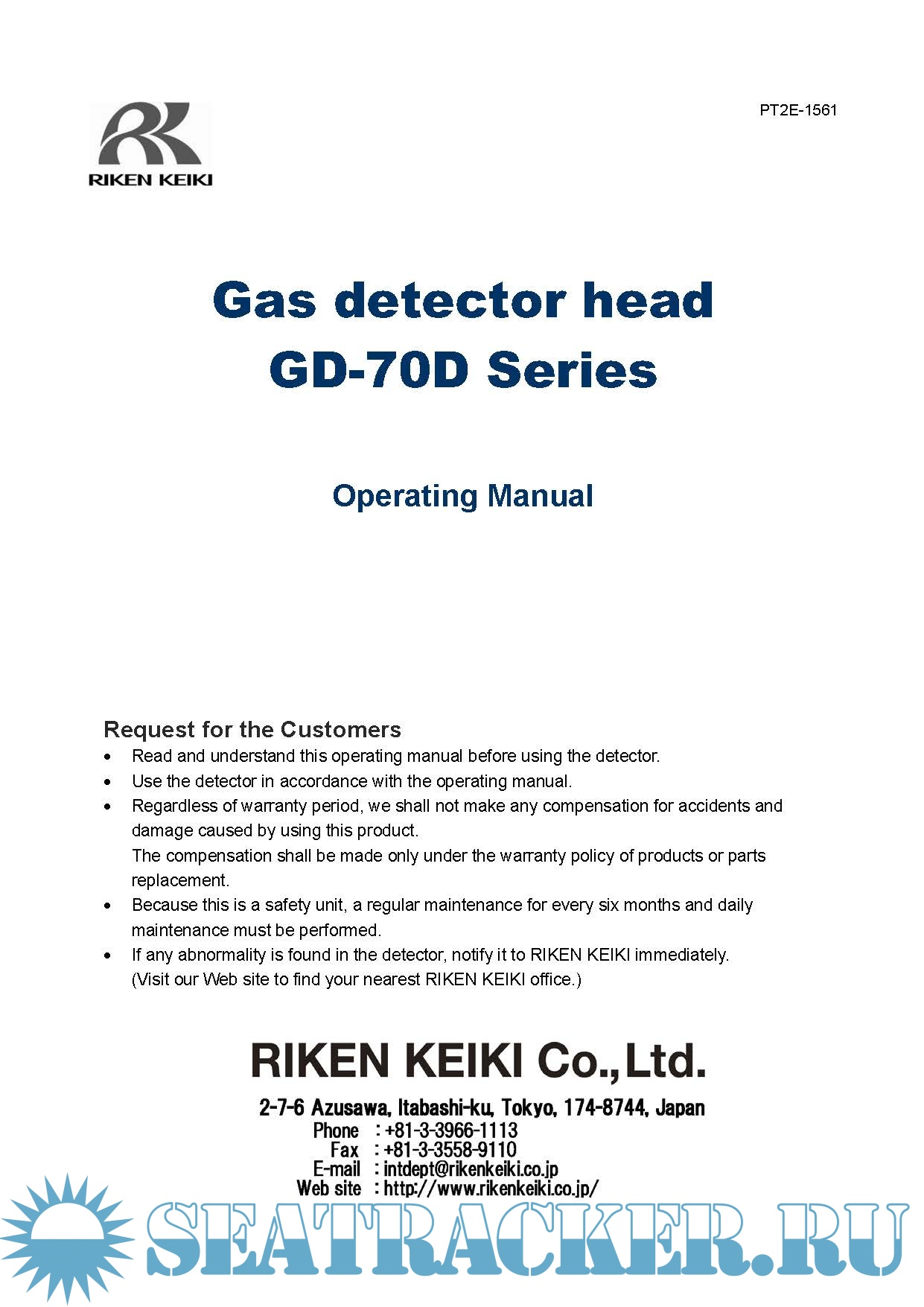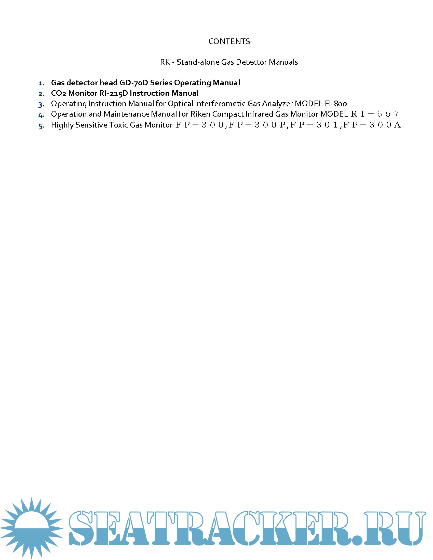 Description: This Download contains Riken Keiki Stand-alone Gas Detector Manuals. For a complete list refer to contents.