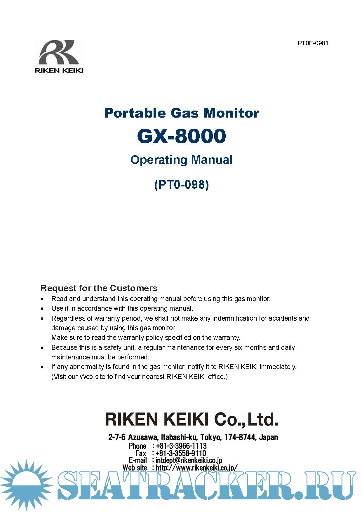 Description: This download contains the Riken Keiki Portable Multi Gas Monitoring Manuals. For a complete list refer to contents.