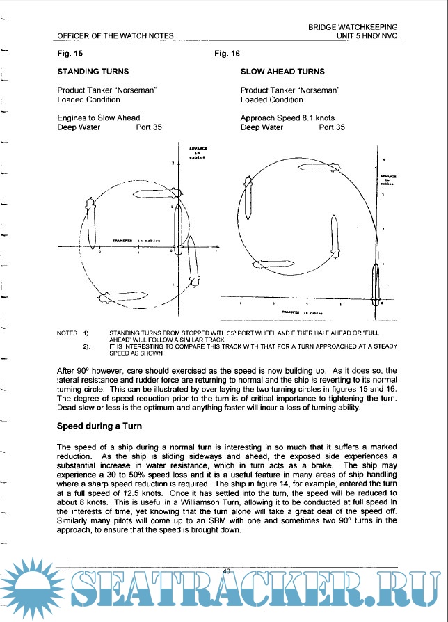 •Knowledge of the effects on manoeuvring, turning circles and stopping distances of: