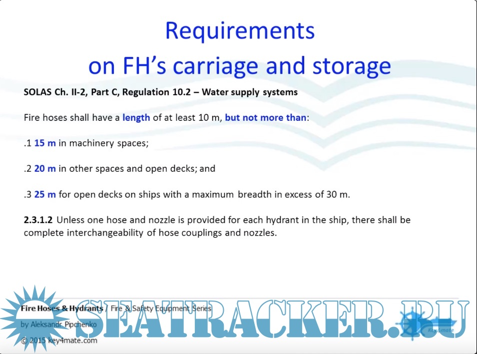 В курсе рассматриваются требования СОЛАС, ИМО и наиболее часто встречающиеся требования судоходных компаний по проверкам этой части противопожарного оборудования.