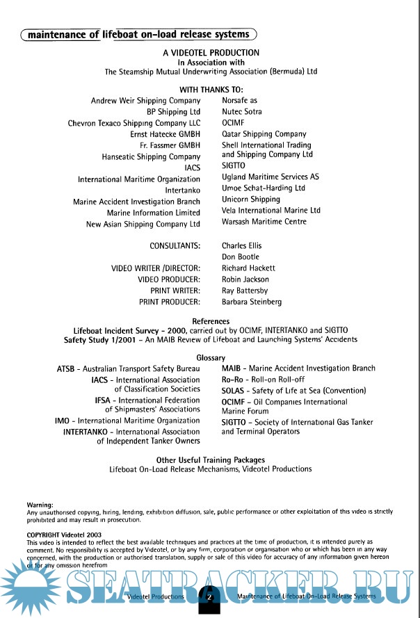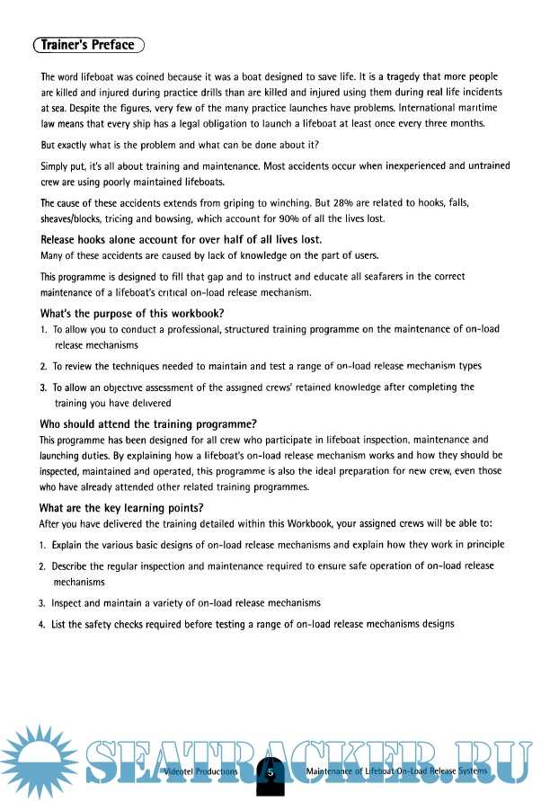 Year: 2003 Language: english Author: Videotel Genre: Other Publisher: Videotel Productions Format: PDF Quality: Scanned pages Pages count: 84 Description: The purpose of this workbook: 1. To allow you to conduct a professional, structured training programme on the maintenance of on-load release mechanisms. 2. To review the techniques needed to maintain and test a range of on-load release mechanism types. 3. To allow an objective assessment of the assigned crew's retained knowledge after completing the training you have delivered.