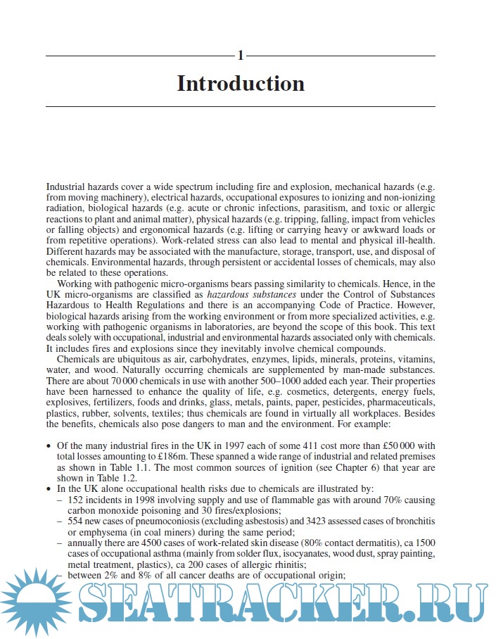 Year: 2002 Language: english Author: Phillip Carson and Clive Mumford Publisher: Butterworth-Heinemann Edition: 2nd ISBN: 978-0-7506-4888-2 Format: PDF Quality: eBook Pages count: 619 Description: The authors' aim with this handbook, is to provide a rapid ready-reference to help in the often complex task of handling, using and disposing of chemicals safely and with minimum risk to people's health or damage to facilities or to the environment. The book provides look-up data, and concise, clear explanations of general chemical principles, physiochemical and reactive properties, toxicities and exposure limits, flammability characteristics, monitoring techniques, personal protection and other parameters and requirements relating to compliance with designated safe practice, control of risks to people's health and limitation of environmental impact.