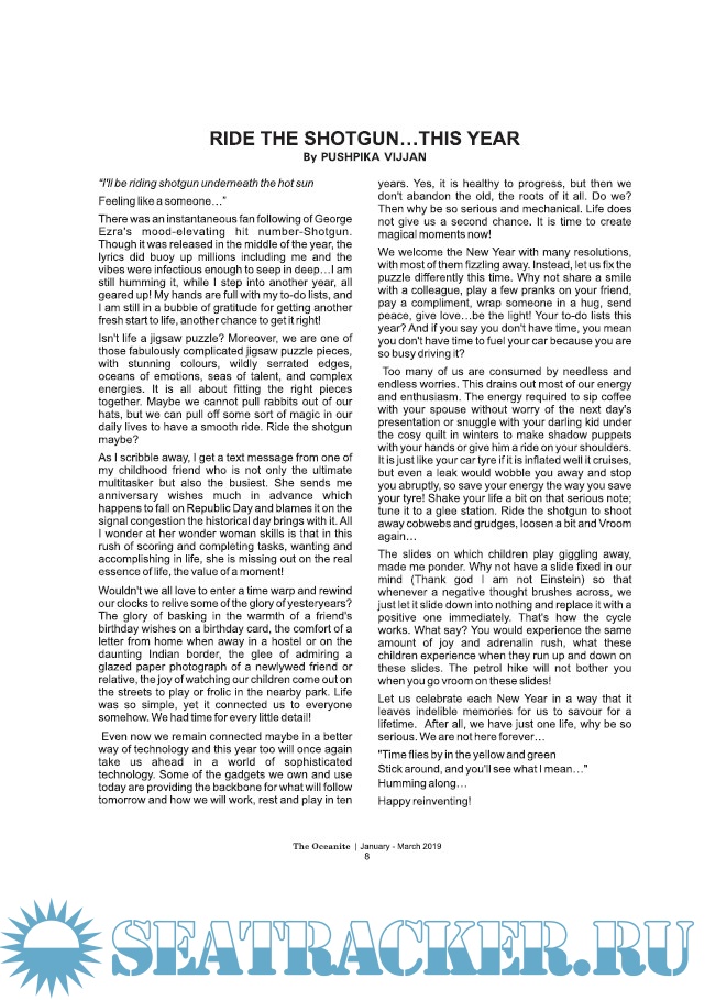 'The Oceanite' is India's first nautical magazine with the name coined for the Greek word 'Oceanid' which means a 'seanymph'