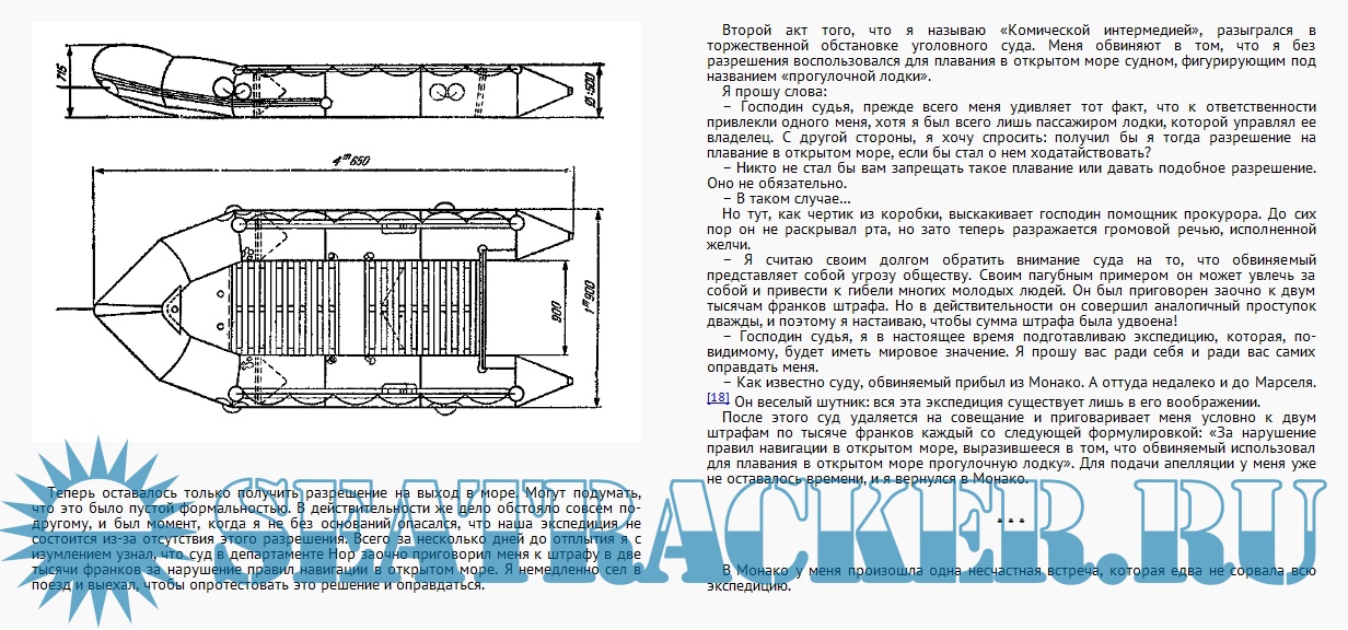 Рождение идеи Подготовка Научная подготовка Практическая подготовка Средиземное море - Отплытие - Плавание вблизи берегов (25–27 мая 1952 года) - В открытом море (28 мая — 7 июня) - С 7 по 21 июня - Битва за снаряжение. Танжер - Первые итоги Атлантический океан - Отплытие из Танжера - Один в океане - Касабланка — Лас-Пальмас - Земля. Искушение. Колебания - «Человек соленой воды» - Вода снизу и сверху - Какая долгота? - «Аракака». Прибытие - Земля Заключение Приложение