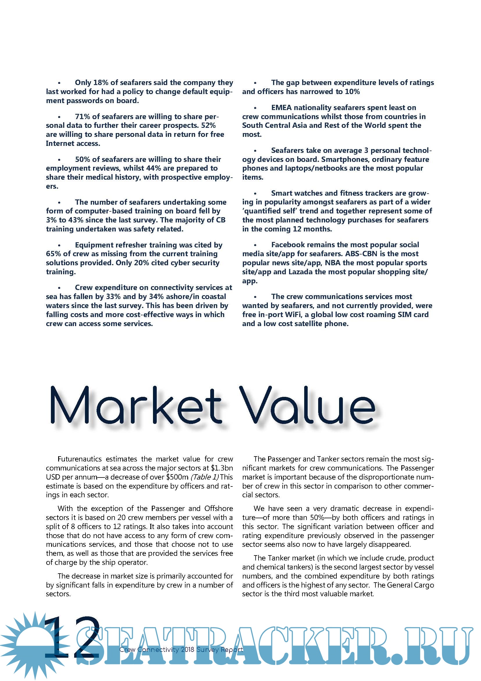 Year: 2018 Language: english Author: Futurenautics Maritime Genre: Research papers Format: PDF Quality: eBook Pages count: 52 Description: In absolute terms the number of seafarers who can now use the Internet at sea has increased by over half a million . That's a hugely significant achievement. It's easy to look at these numbers and forget that each represents a human being. We mustn't.