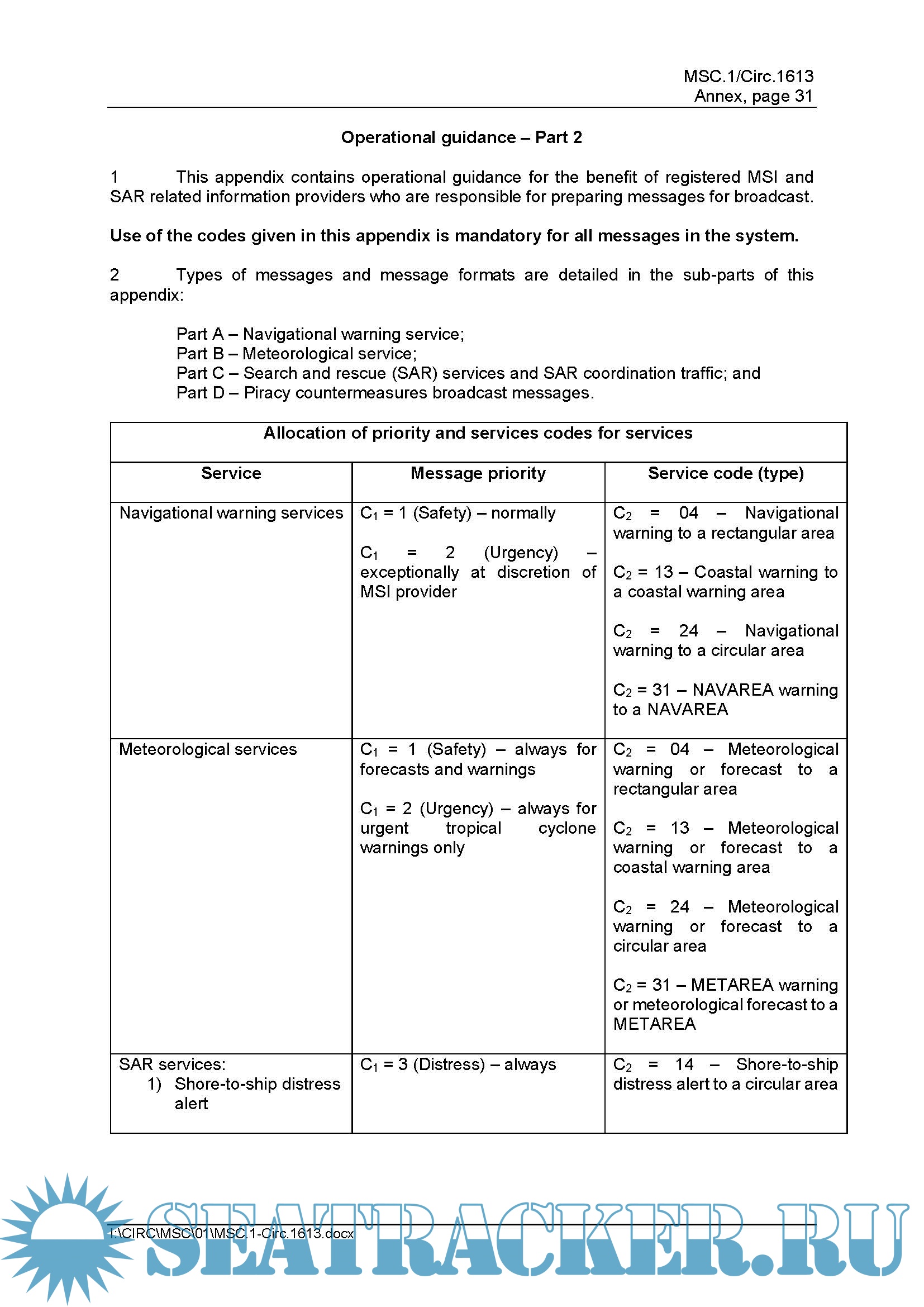 APPENDIX 1 - IMO Enhanced Group Call4 Coordinating Panel, Annex page 19