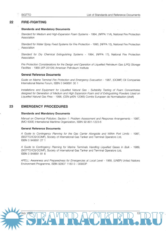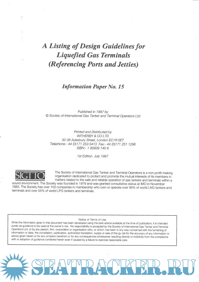 SIGTTO Information Paper No. 15: A Listing Of Design Guidelines For Liquefied Gas Terminals (Referencing Ports and Jetties)