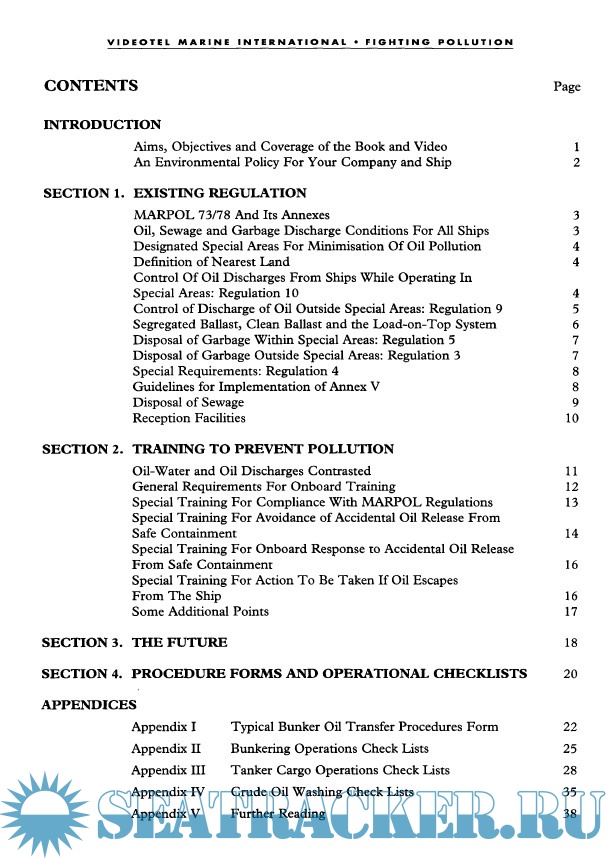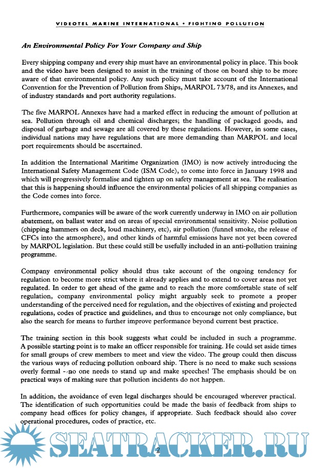 Year: 1997 Language: english Author: VIDEOTEL Genre: Training courses Publisher: VIDEOTEL Format: PDF Quality: Scanned pages Pages count: 43 Description: This book deals with the ways in which professional seamen can limit the pollution of the seas.