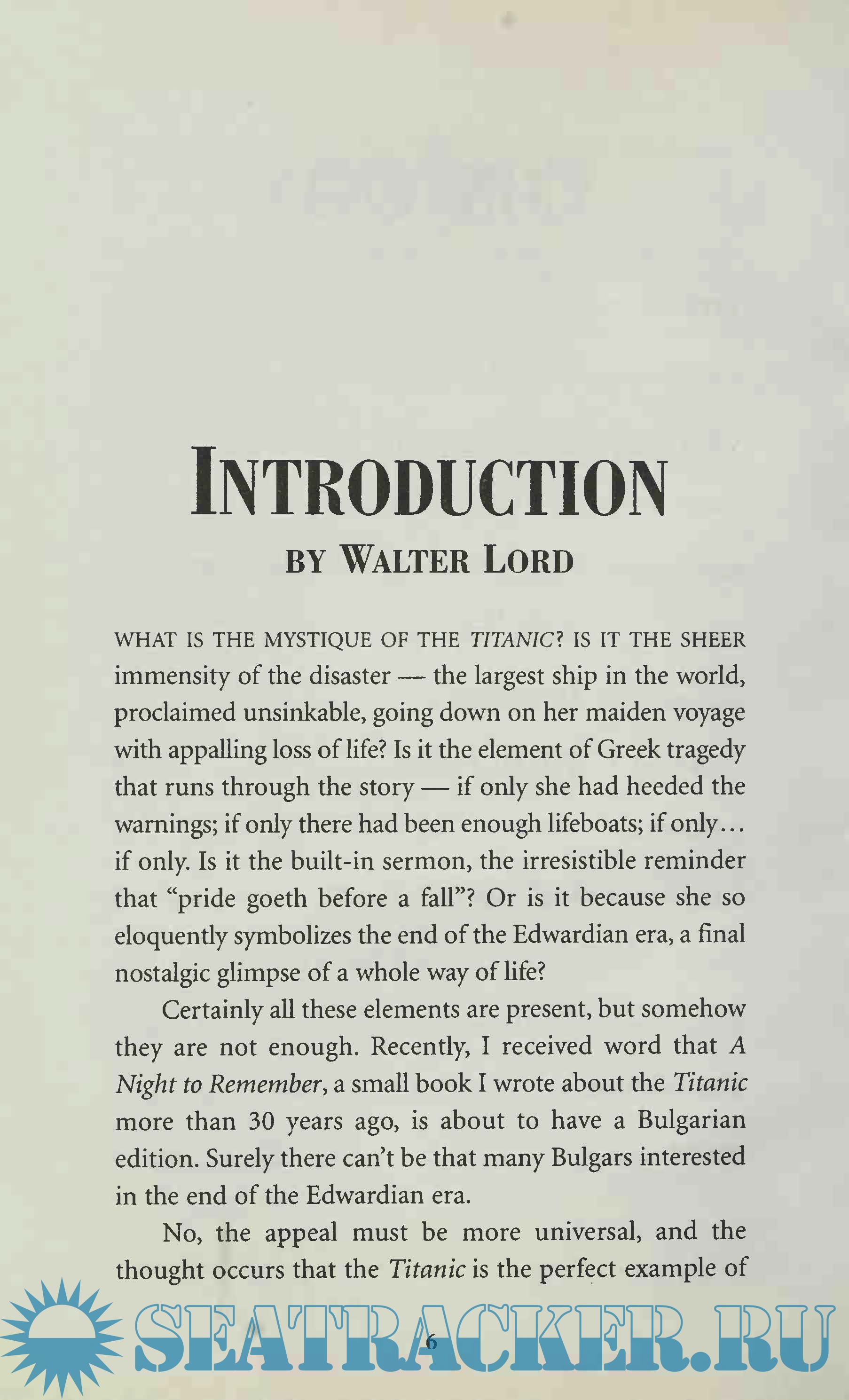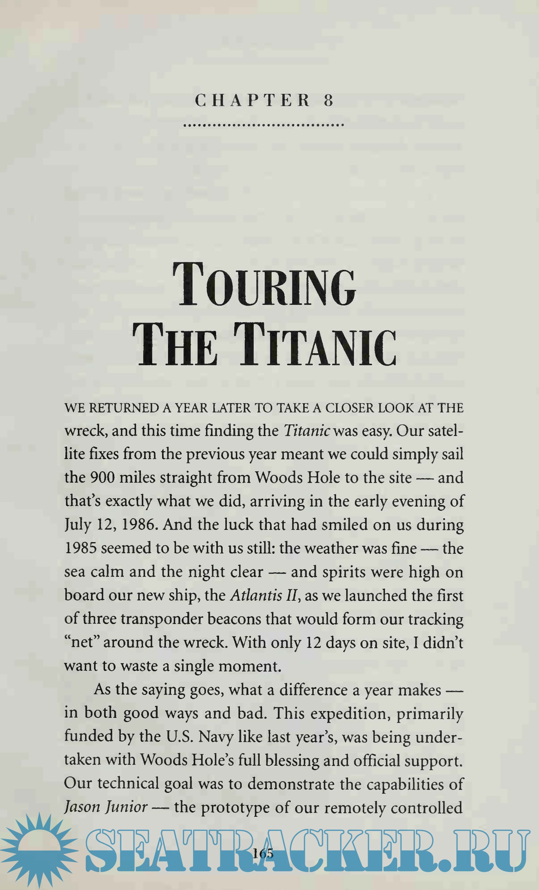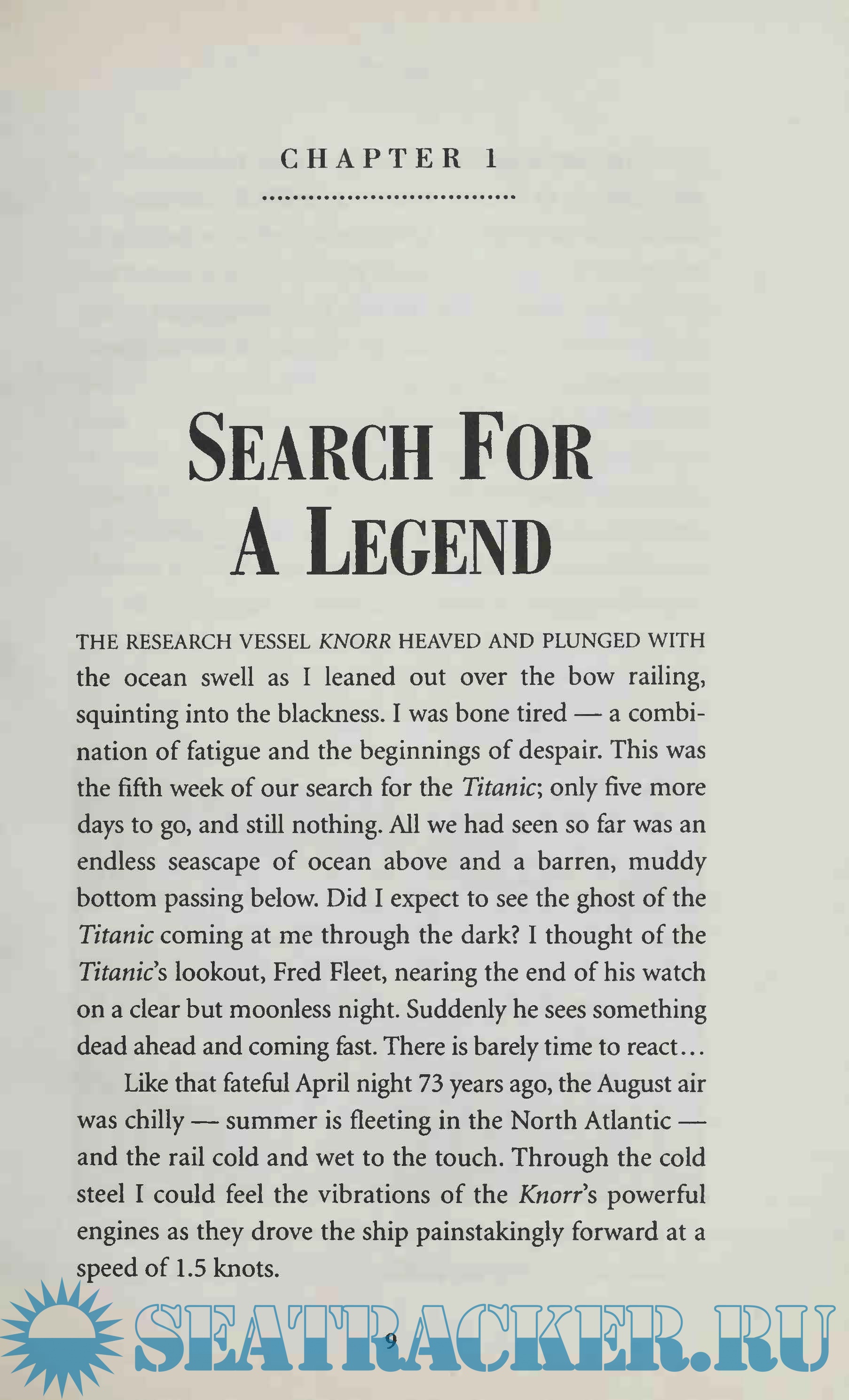 Year: 1995 Language: english Author: Robert D. Ballard and Rick Archbold Genre: Handbook Publisher: Madison Press Books ISBN: 0-446-67174-6 Format: PDF Quality: Scanned pages Pages count: 344 Description: In September 1985 Ballard and a Franco-American expedition discovered the wreck of the Titanic. Ballard used a specially designed remote imaging system to locate and photograph the wreck and then returned the following year to further survey and photograph the site in a three-person submarine. This pictorial record of his expedition is filled with good quality colour and black-and-white pictures. Wherever possible he compares the modern-day pictures to original ones of the Titanic. After briefly discussing other attempts to find the Titanic, he gives a solid account of the sinking, then details the events that led to the ship's discovery. Highly recommended for libraries with an interest in the Titanic.