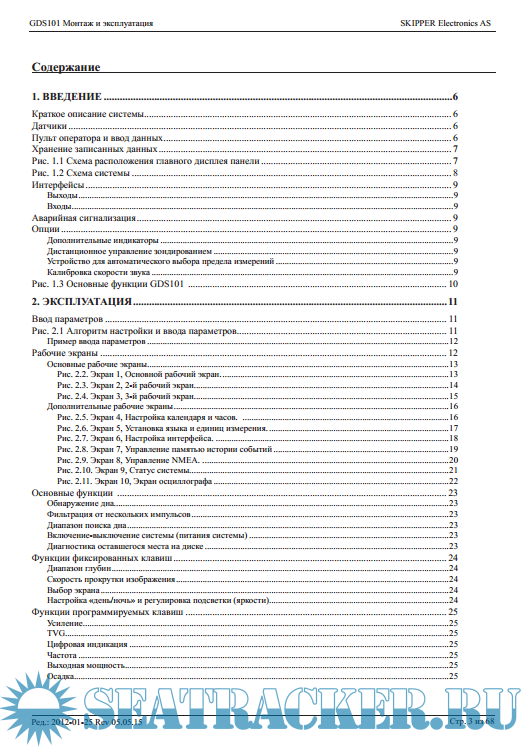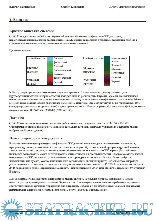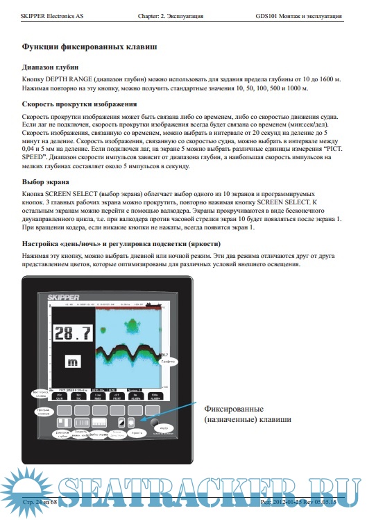 Руководство по монтажу и эксплуатации эхолота Skipper GDS 101