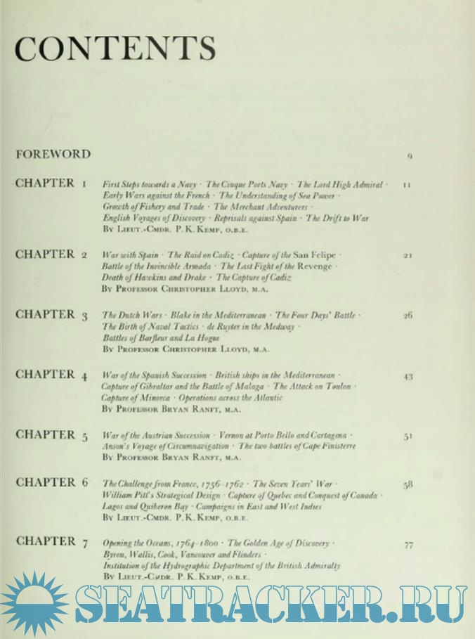 Year: 1969 Language: english Author: Peter Kemp Genre: History Publisher: G.P. Putnam's Sons, NY, NY Edition: First ISBN: 9780213179113 Format: PDF Quality: Scanned pages Pages count: 312 Description: This book attempts to present the history of the UK Royal Navy in 120,000 words. It is a difficult, but worthwhile effort, as four centuries of continuous life, added to two or three hundred years of a previous sporadic existence, presents a canvas on which the very limited paint available must inevitably be thinly spread. Therefore, the aim of the author has been to paint a picture on the broadest lines, concentrating only here and there to describe an action of particular interest or a battle of particular importance.