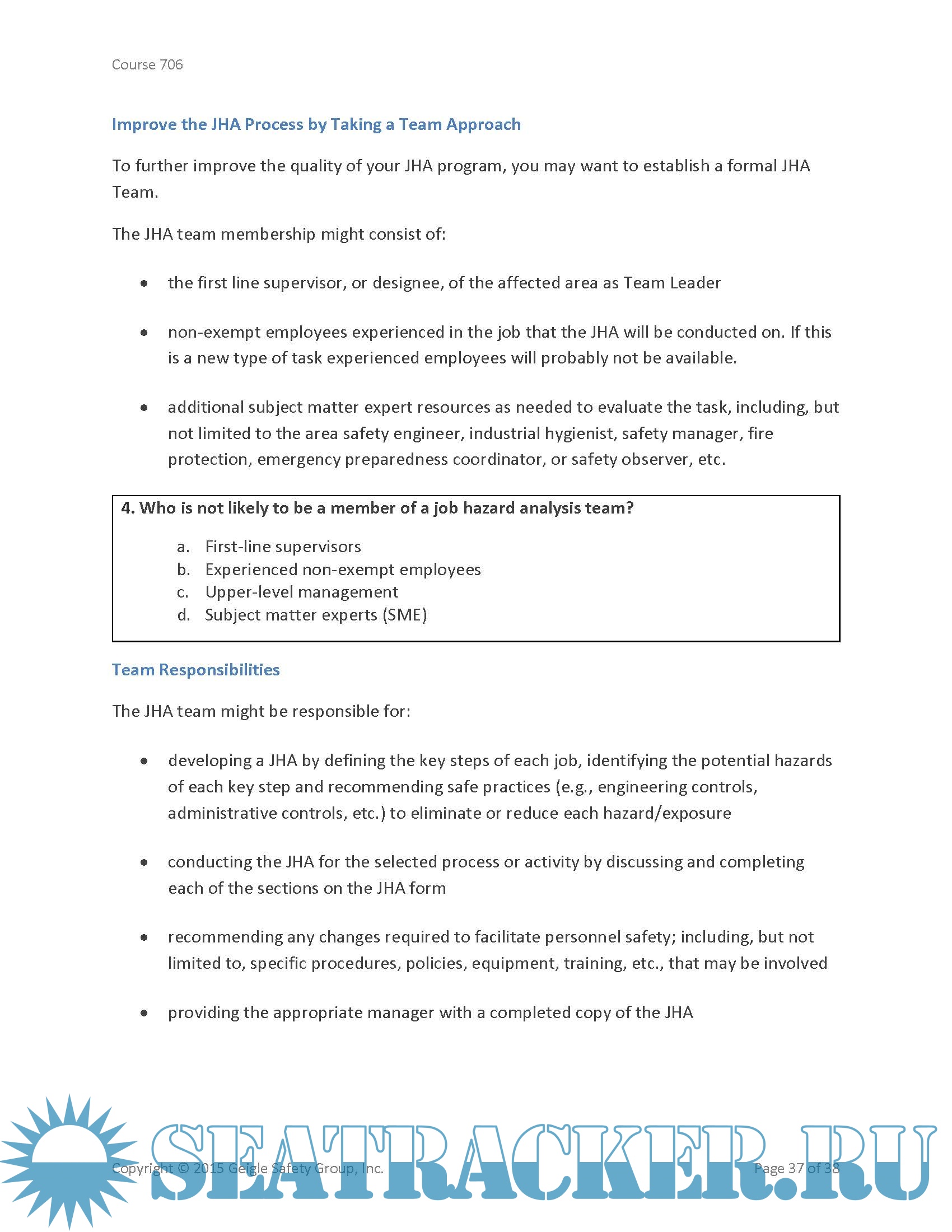 writing a safe job procedure. This course includes a discussion of conducting