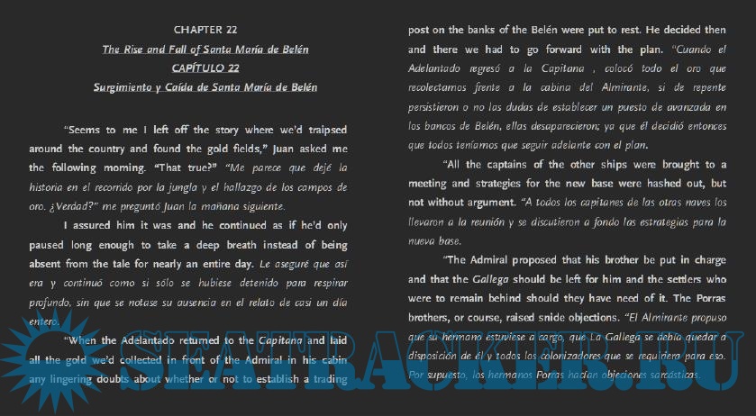 Description: This is a dual-language book about the calamitous fourth voyage of Christopher Columbus to the "New World." It is the stuff of fiction: fierce storms, contrary currents and hurricanes. Pitched battles with hostile natives and former companions. Ship wrecks, marooning, mutiny, trickery, petty jealousies, deceit, greed, dashed dreams, despair, extraordinary heroism and rescue. But every bit of it is true and documented. The only license I have taken with the story has been the creation of the fictional narrator of the events.