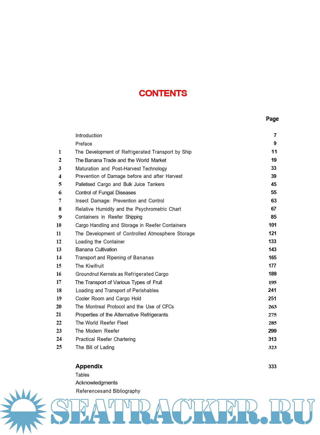 In this book we have devoted specific attention to growth and post-harvest handling, containensation, modern reefer design and the world reefer trade. Detailed information is also given about the cultivation, perishability, storage and transport of various fruits, especially the increasingly popular