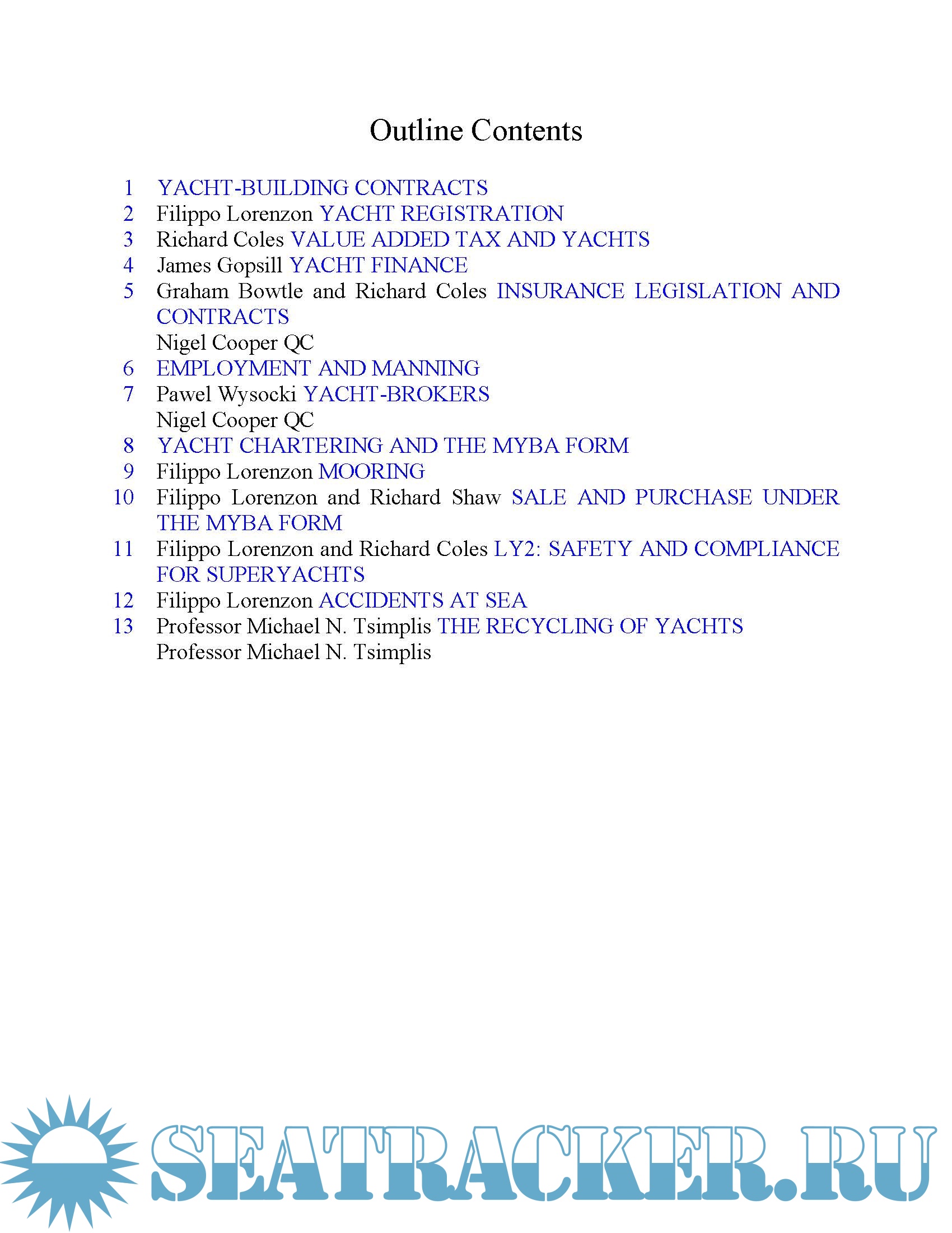 -It covers all major aspects of yachting law in a single book