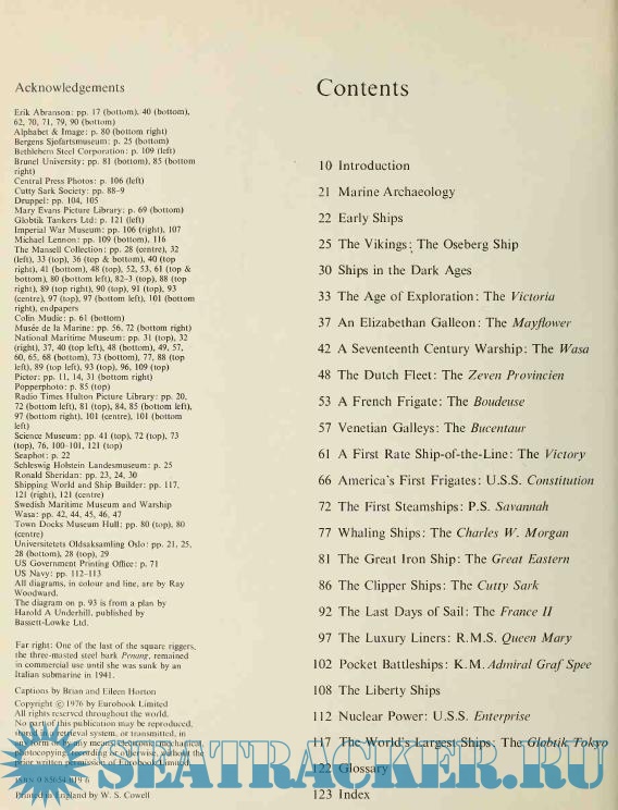 Description: Nineteen famous ships, from a Viking longship to a modern supertanker, show the changing world of man and the sea at peace and at war. Seen in sequence, the ships illustrate the gradual evolution from small vessels, dependent on manpower, winds and weather, to the selfcontained floating cities of today, navigated by computer and driven by nuclear power. In between come ships from the great days of sail, pioneers of steam, historic battleships and luxury liners. Each ship is dramatically but accurately illustrated with a full colour painting and there are also line drawings, photographs and cutaway plans. A fully illustrated introduction gives technical details on hulls, sails, rigging and engine types and there is a section on nautical archaeology.