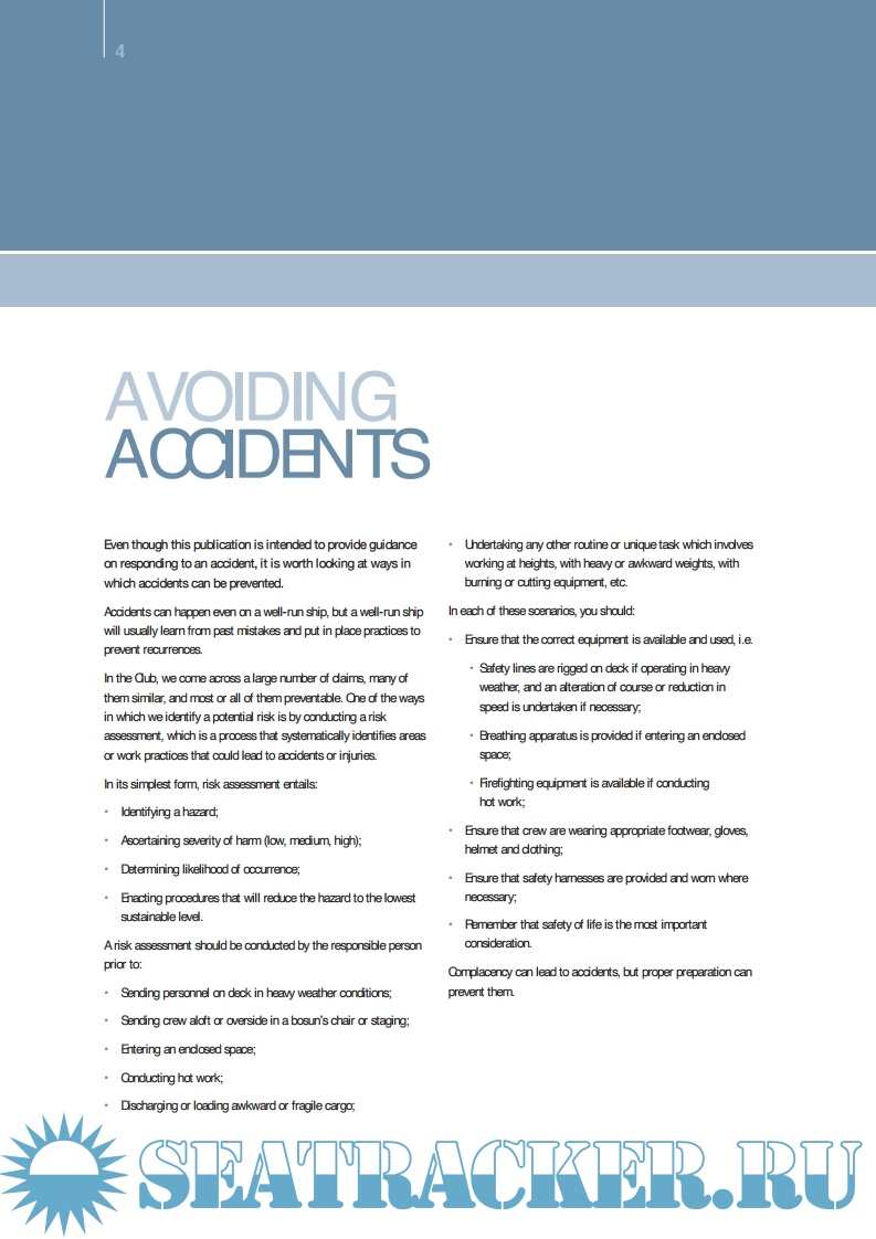 Year: 2012 Language: english Author: Eric Murdoch Genre: Guide Format: PDF Quality: eBook Pages count: 22 Description: The purpose of this guide is to list, in simple terms, the actions that Masters should take when there is an incident or problem that may result in claims against the shipowner or manager. This guide is concerned only with Protection and Indemnity (P&I) risks and contains advice on how to protect your owner’s interests after a problem has arisen. It is not intended to replace any standing instructions on accidents, emergency response or reporting that your company has.
