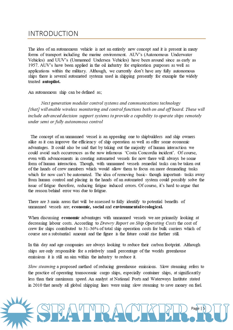 fully autonomous or unmanned container ship. It will focus mostly on the concept of