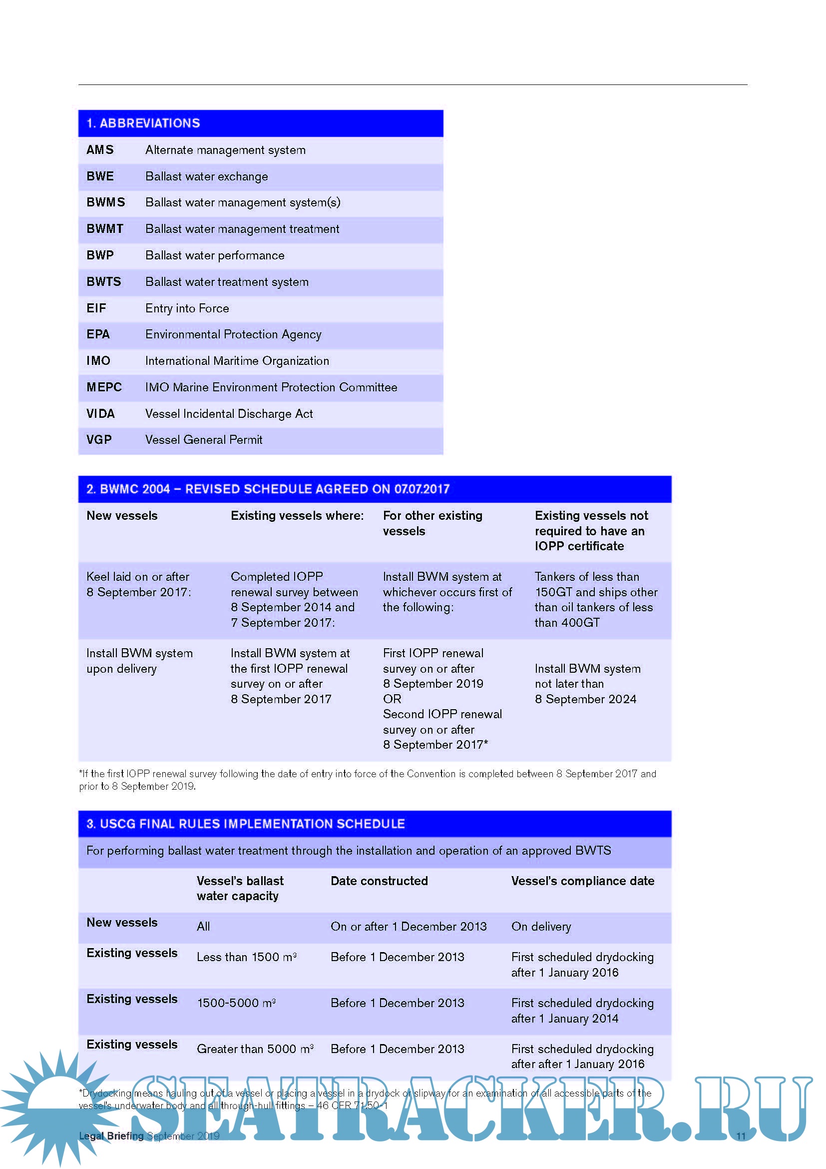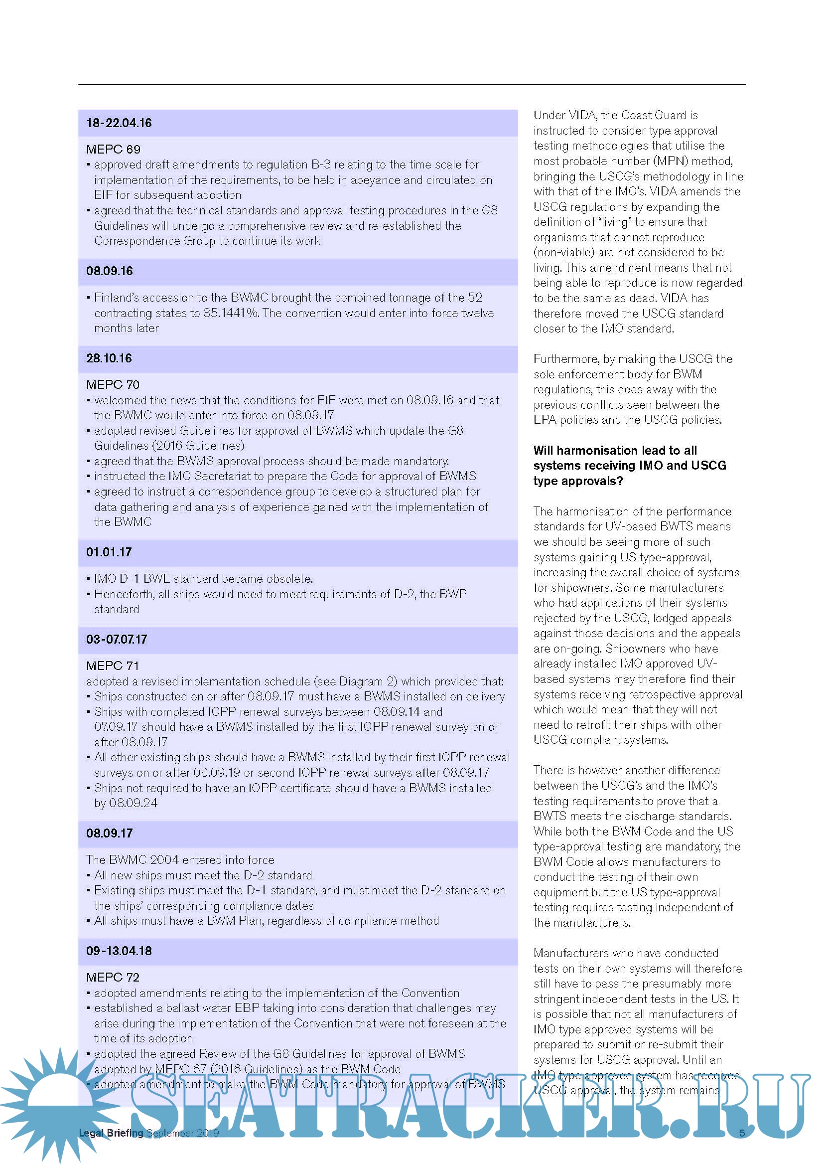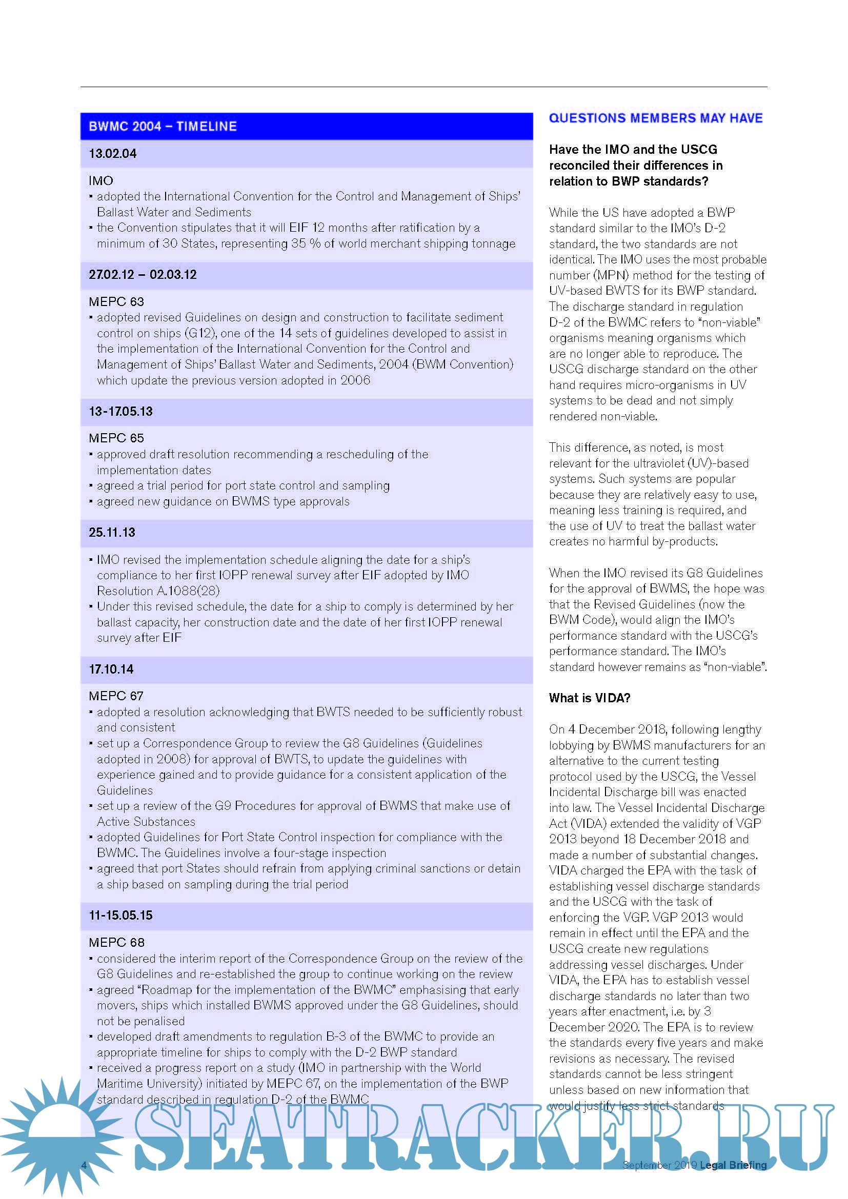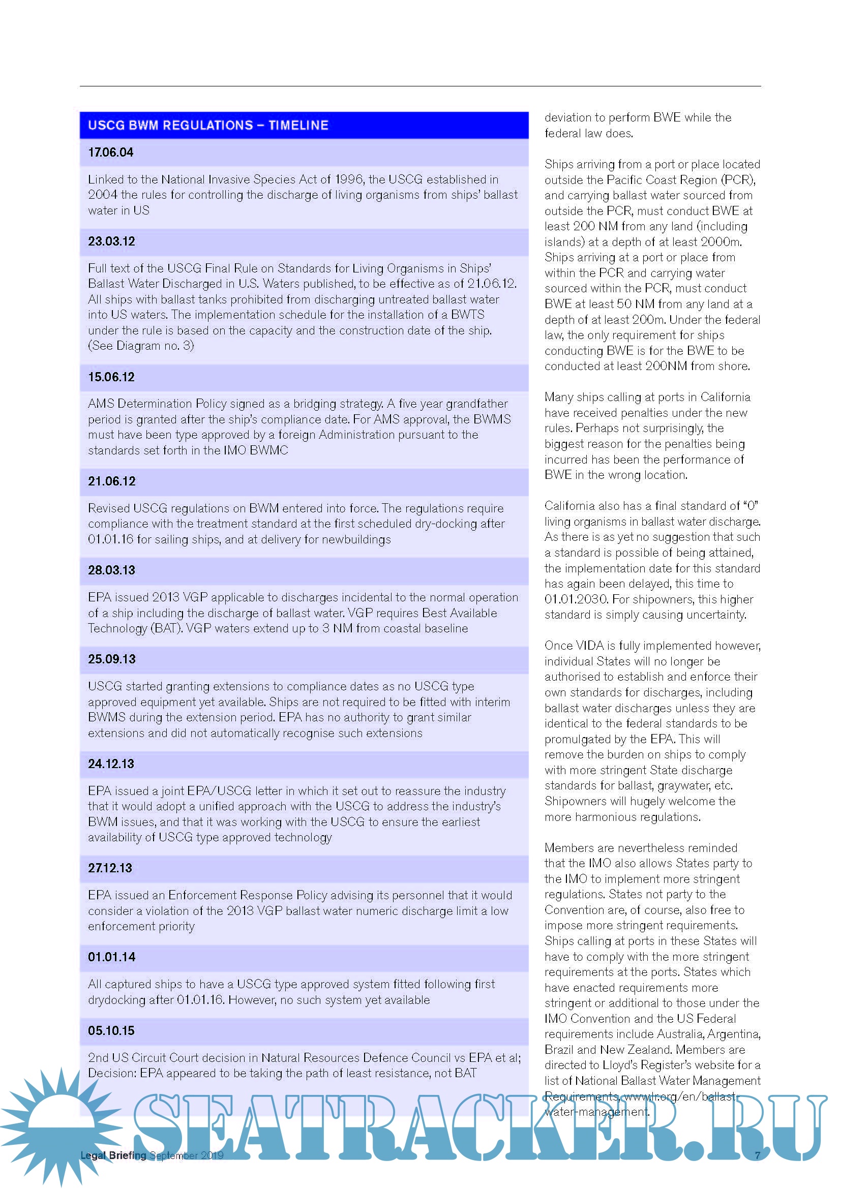 Legal Briefing - Sharing the Club’s legal expertise and experience, IMO Ballast Water Management Convention 2004 USCG Ballast Water Management Regulations