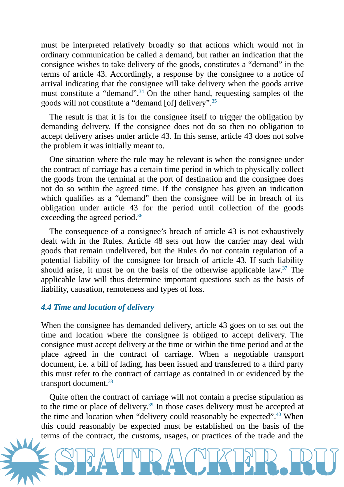defence against claims for misdelivery. The international legislature’s