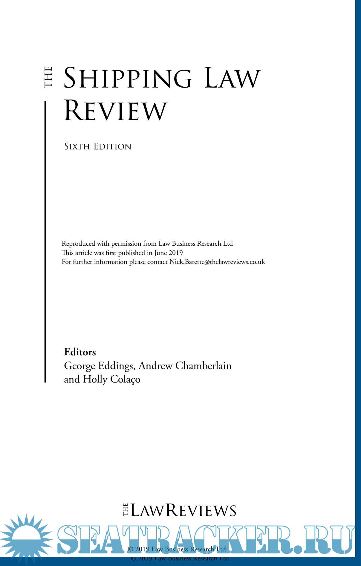 Year: 2019 Language: english Author: George Eddings, Andrew Chamberlain and Holly Colaço Genre: Reference book Publisher: Law Business Research Ltd Edition: 6 ISBN: 978-1-83862-031-8 Format: PDF Quality: eBook Pages count: 632 Description: The sixth edition of this book aims to continue to provide those involved in handling shipping disputes with an overview of the key issues relevant to multiple jurisdictions. We have again invited contributions on the law of leading maritime nations, including both major flag states and the countries in which most shipping companies are located. We also include chapters on the law of the major shipbuilding centres and a range of other jurisdictions. As with previous editions of The Shipping Law Review, we begin with cross-jurisdictional chapters looking at the latest developments in important areas for the shipping industry: competition and regulatory law, sanctions, ocean logistics, piracy, shipbuilding, ports and terminals, offshore shipping, marine insurance and environmental issues. A new chapter on decommissioning is also included, which seeks to demystify this interesting and fast-developing area of law. Each jurisdictional chapter gives an overview of the procedures for handling shipping disputes, including arbitration, court litigation and any alternative dispute resolution mechanisms. Jurisdiction, enforcement and limitation periods are all covered. Contributors have summarised the key provisions of local law in relation to shipbuilding contracts, contracts of carriage and cargo claims. We have also asked the authors to address limitation of liability, including which parties can limit, which claims are subject to limitation and the circumstances in which the limits can be broken. Ship arrest procedure, which ships may be arrested, security and counter-security requirements, and the potential for wrongful arrest claims are also included