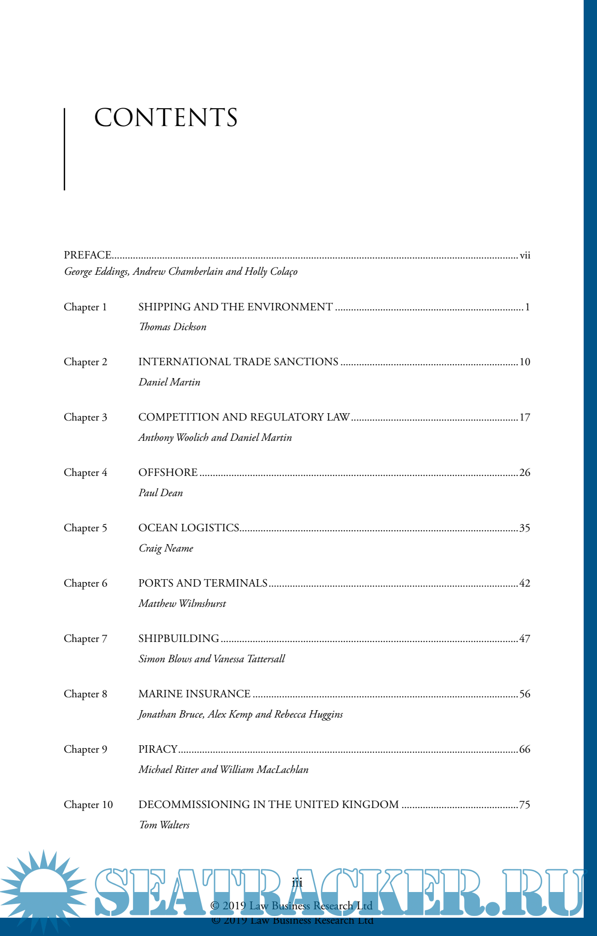 terminals, offshore shipping, marine insurance and environmental issues. A new chapter