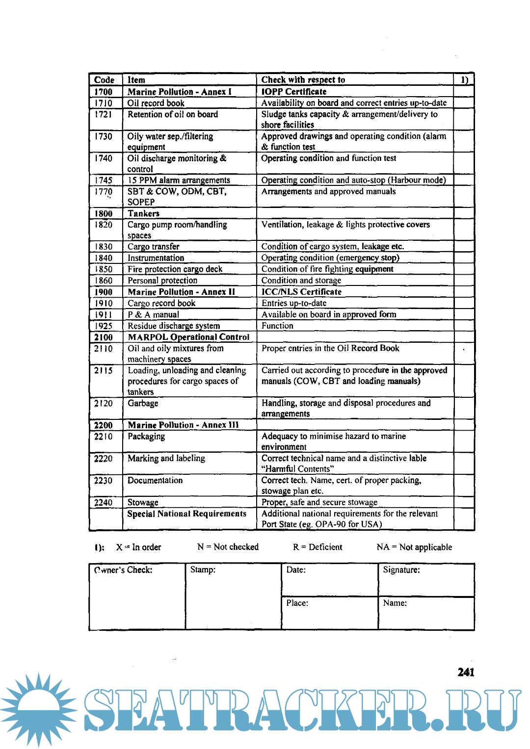 Приложение 15. Чек-лист для капитанов судов по проверкам