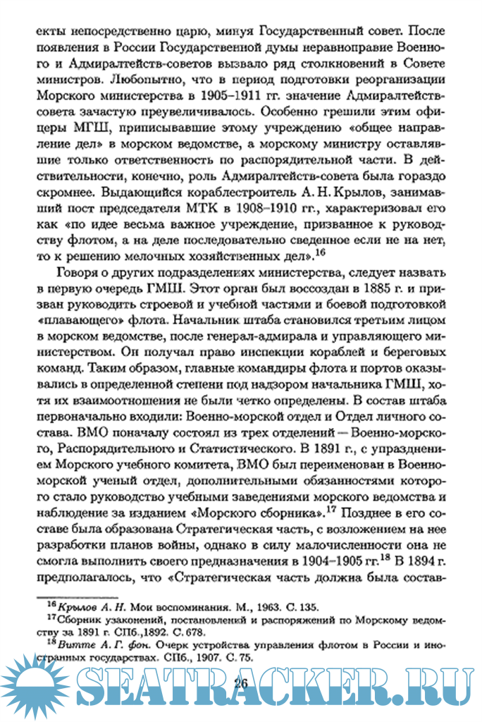 Год выпуска: 2006 Язык: русский Автор: К. Б. Назаренко Жанр: История Издательство: Издательство СПбГУ ISBN: 5-288-04066-4 Формат: PDF Качество: Отсканированные страницы Количество страниц: 220 Описание: Монография посвящена истории развития структуры центрального военно-морского управления в России в 1905-1914 гг. На основе архивных материалов, воспоминаний, публицистических сочинений рассматриваются взаимоотношения различных лиц и групп внутри руководства морского ведомства, проекты реорганизации Морского министерства. Для военных историков, преподавателей, студентов и всех интересующихся как историей отечественного военно-морского флота, так и историей государственных учреждений дореволюционной России.