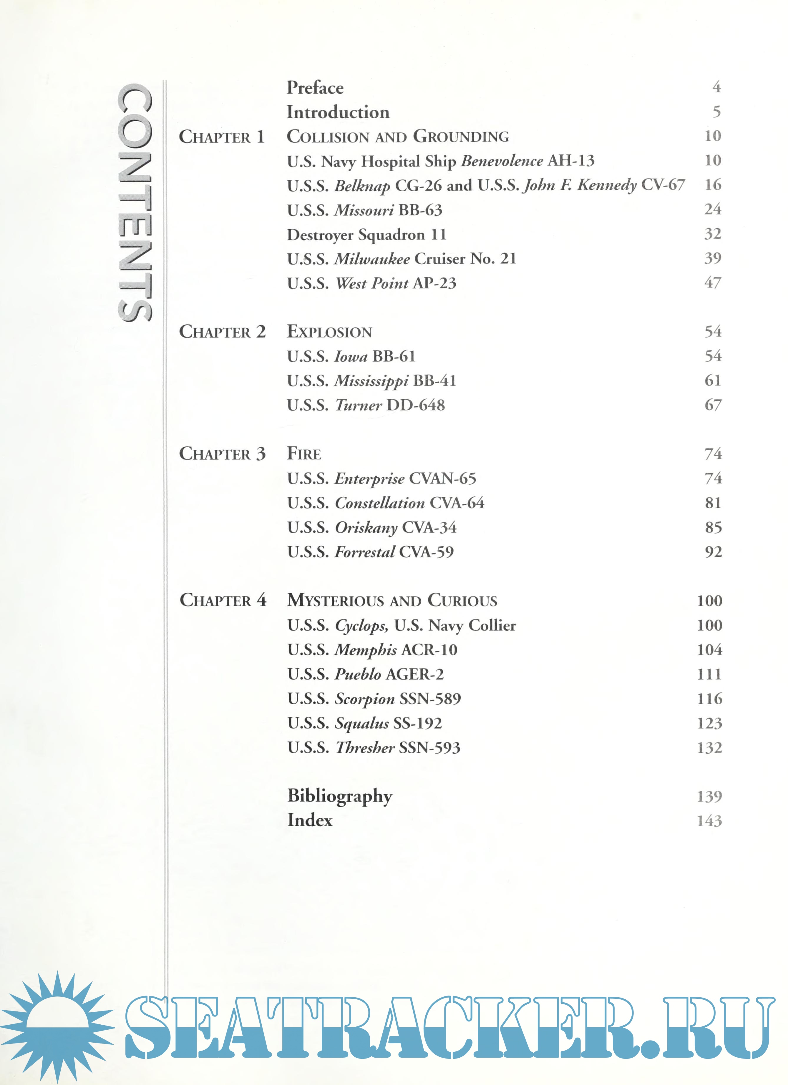 Year: 1998 Language: english Author: Kit Bonner, et al. Genre: Handbook Publisher: MBI Publishing ISBN: 0760305943 Format: PDF Quality: Scanned pages Pages count: 150 Description: Landlubbers beware! Great Naval Disasters is a collection of 19 incredible stories of ill-fated ships, each including a full recounting of the ship's early history, the events surrounding her tragedy, and her ultimate misfortune. The most deadly enemies of the warship other than combat - collision, explosion, fire, grounding, and, of course, the mysterious and curious... Contains accounts of raging fires on the USS Enterprise, USS Uriskany, USS Forrestal, and USS Constellation.
