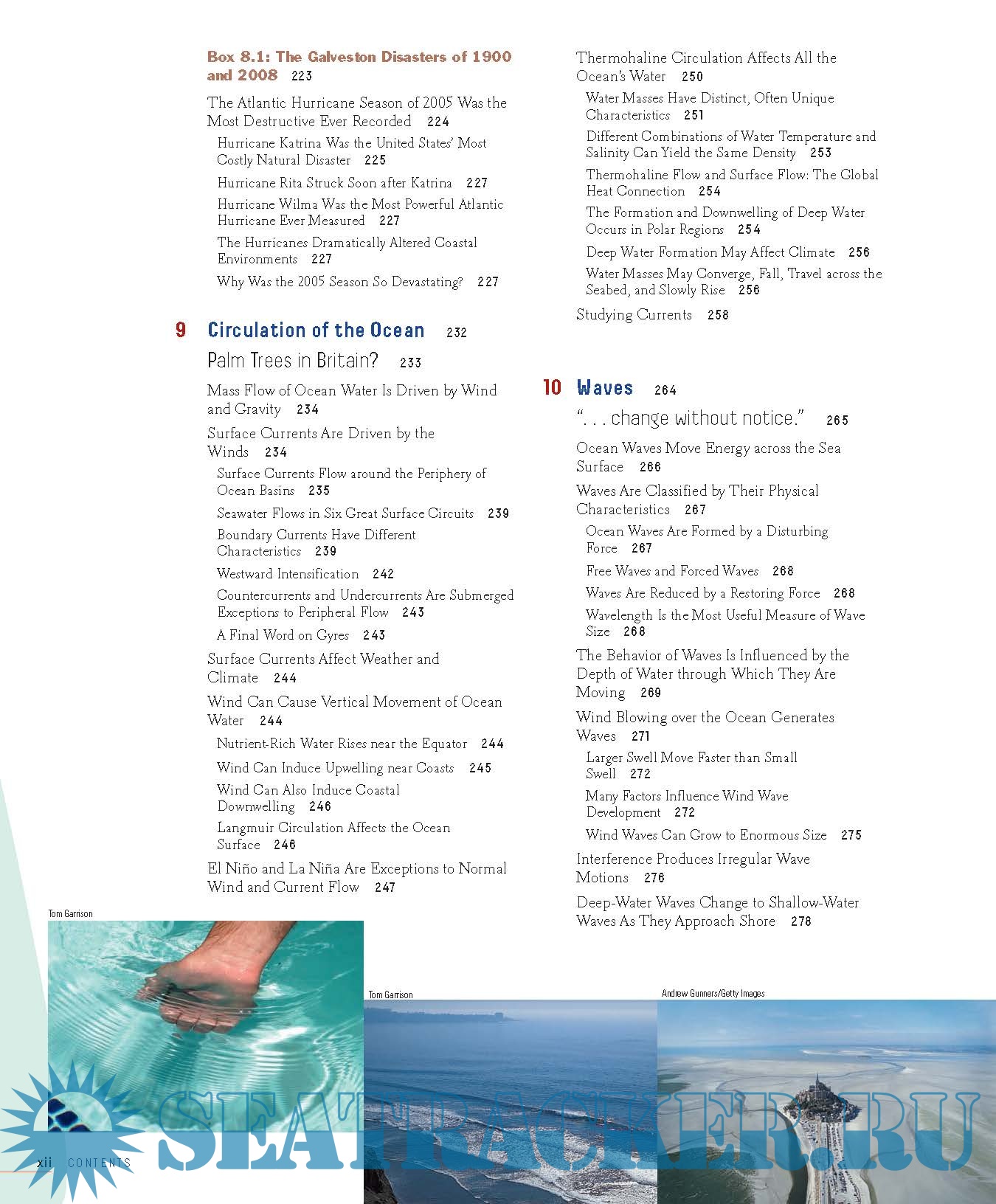 Year: 2010 Language: english Author: Tom Garrison Publisher: Brooks-Cole Cengage Learning ISBN: 978-0-495-39193-7 Format: PDF Quality: eBook Pages count: 607 Description: This book gives you a basic understanding of the scientific questions, complexities, and uncertainties involved in ocean use-as well as the role and importance of the ocean in nurturing and sustaining life on Earth. Seasoned researchers Tom Garrison emphasize the interdisciplinary nature of marine science, stressing its links to biology, chemistry, geology, physics, meteorology, astronomy, ecology, history, and economics. The book's focus on the science process includes numerous "How Do We Know?" boxes detailing the science behind how oceanographers know what they know.