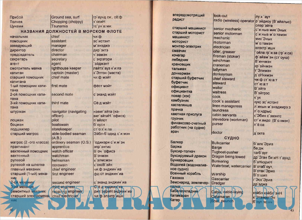 СЛОВАРЬ-РАЗГОВОРНИК ДЛЯ ПОДАЧИ КОМАНД И РАЗГОВОРОВ НА БОРТУ СУДНА