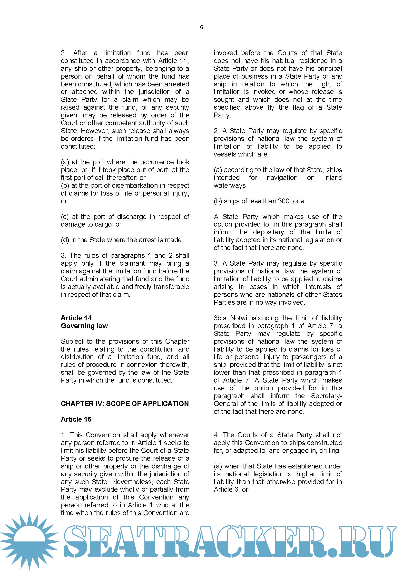 Description: Convention on Limitation of Liability for Maritime Claims (LLMC)