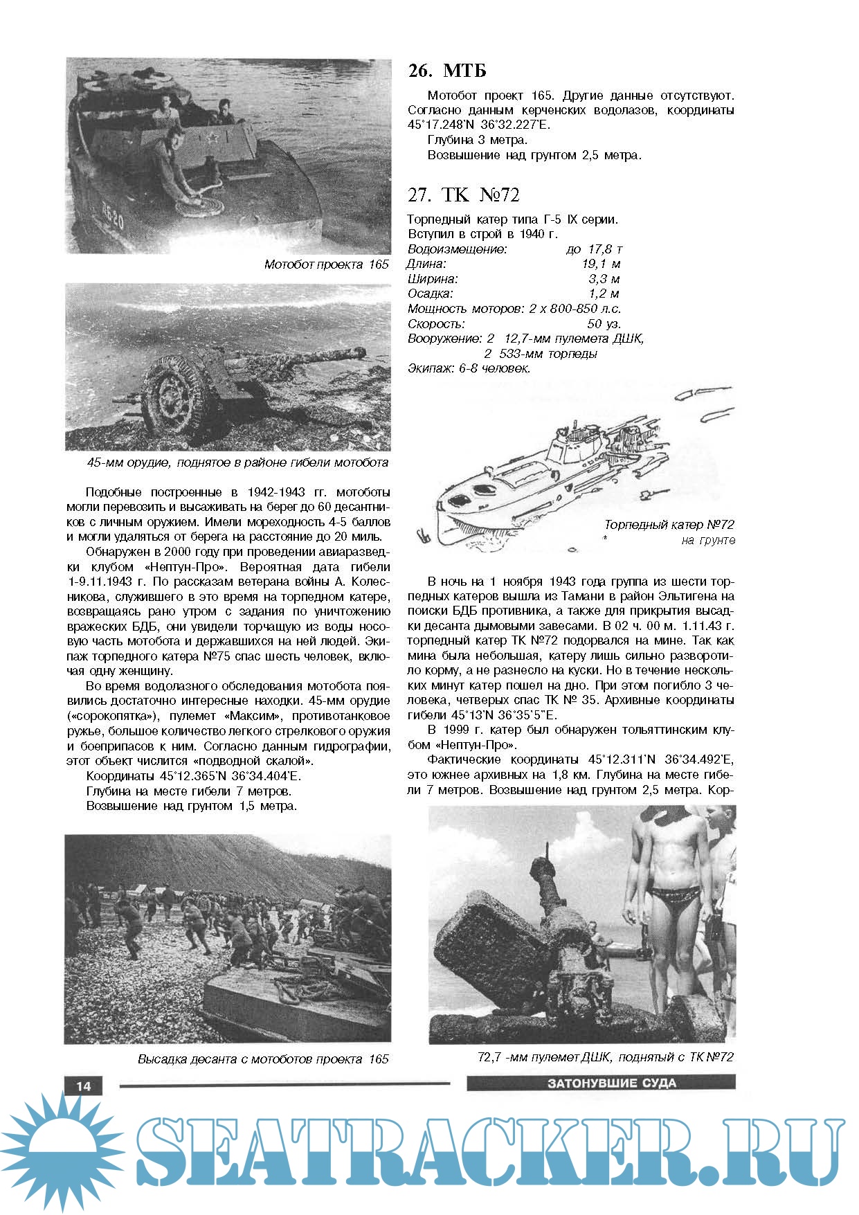 Фактические координаты затонувших объектов проверены на программе DKart. Средняя погрешность при поиске объектов может составлять 100 метров. Авторы справочника не могут дать стопроцентную гарантию того, что некоторые объекты находятся на грунте, либо координаты, предоставленные гидрографами, верны. Пытаться обозначить все места гибели судов — от античности до современности — дело неблагодарное из-за отсутствия, в большинстве случаев, достоверной информации.