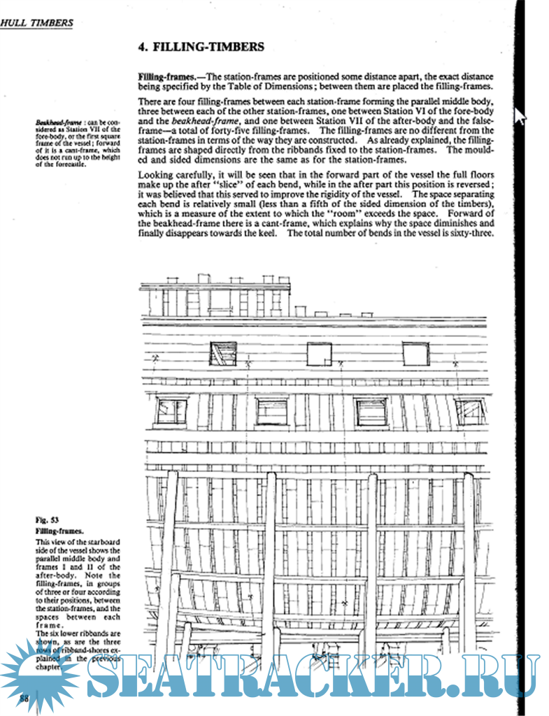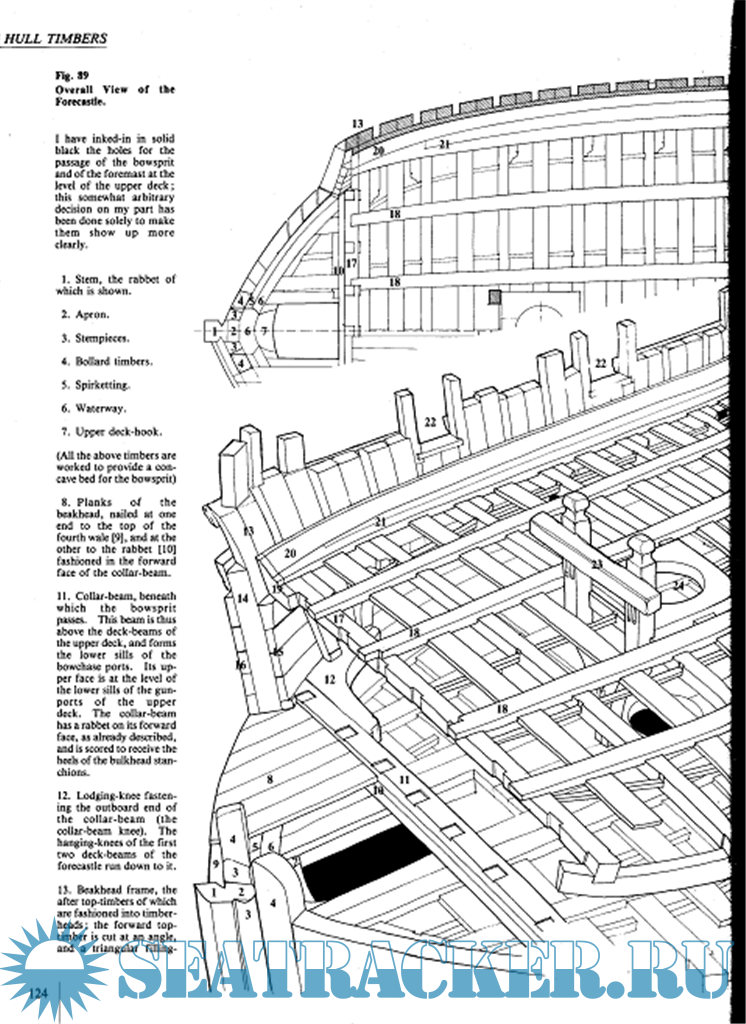 VI. Киль и штевни. Кормовые шпангоуты. Добавочные тимберсы. Усиление и обшивка трюма. Устройство палуб. Внутренняя обшивка выше трюма. Описание других работ внутри корабля. Внешняя обшивка корпуса.