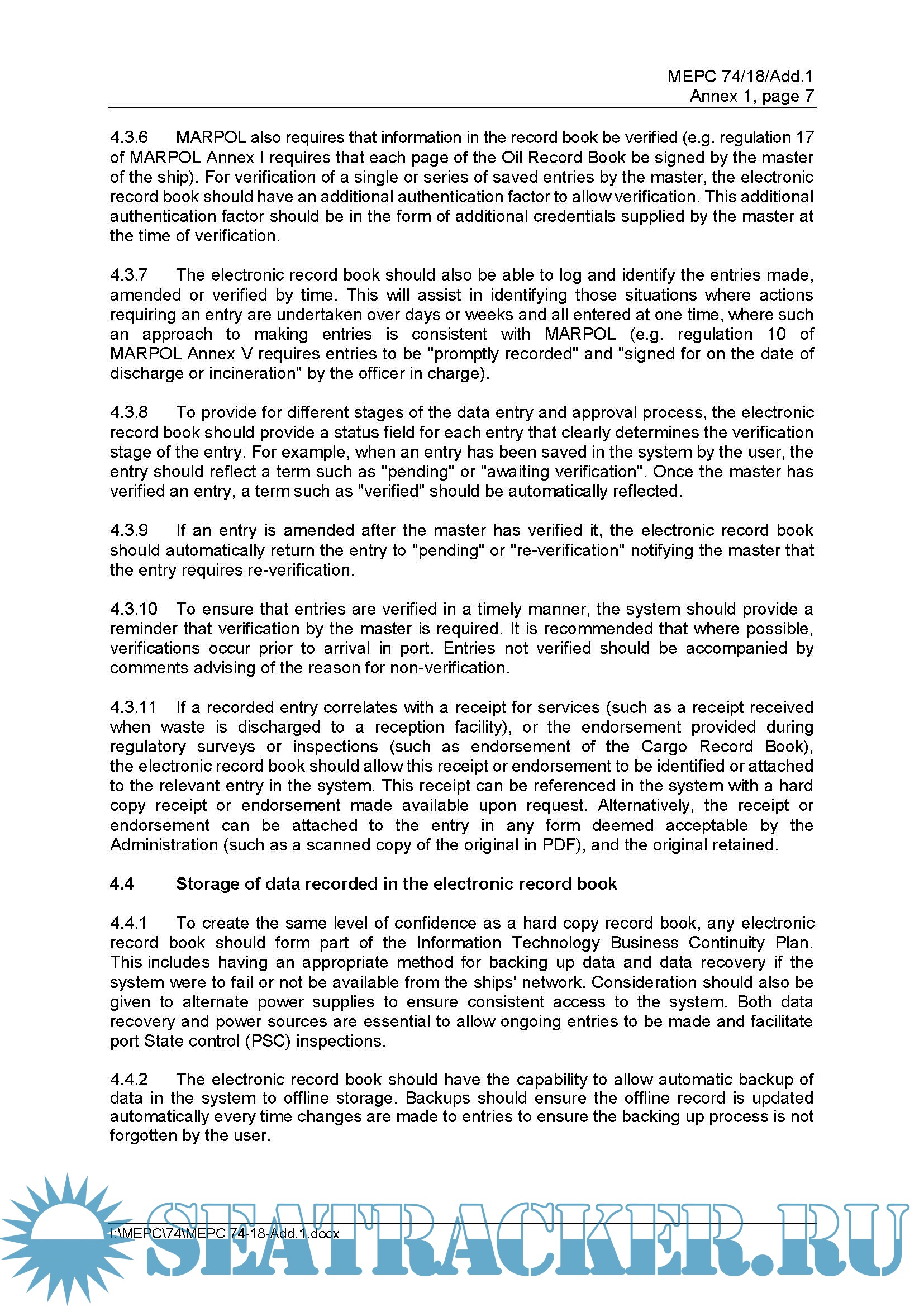 Year: 2019 Language: english Author: IMO Genre: Guide Format: PDF Quality: eBook Pages count: 10 Description: RESOLUTION MEPC.312(74) (adopted on 17 May 2019) GUIDELINES FOR THE USE OF ELECTRONIC RECORD BOOKS UNDER MARPOL