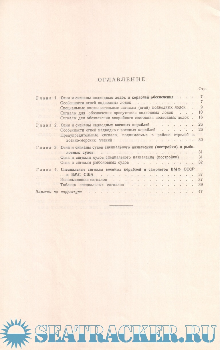 — Описание особенностей судовых огней военных кораблей и сигна¬лов, подаваемых кораблями и судами для обеспечения безопасности плавания, 1971 г.;