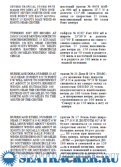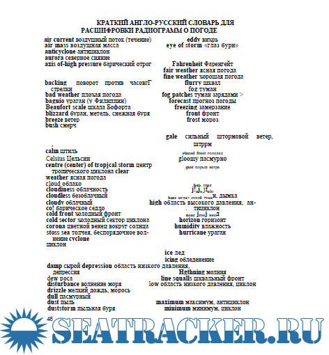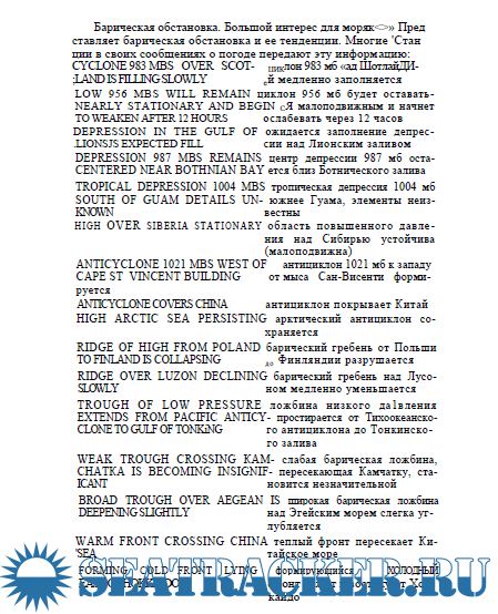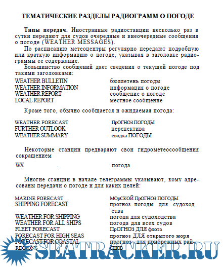 Описание: Иностранные радиостанции несколько раз в сутки передают для судов очередные и внеочередные сообщения о погоде (WEATHER MESSAGES).