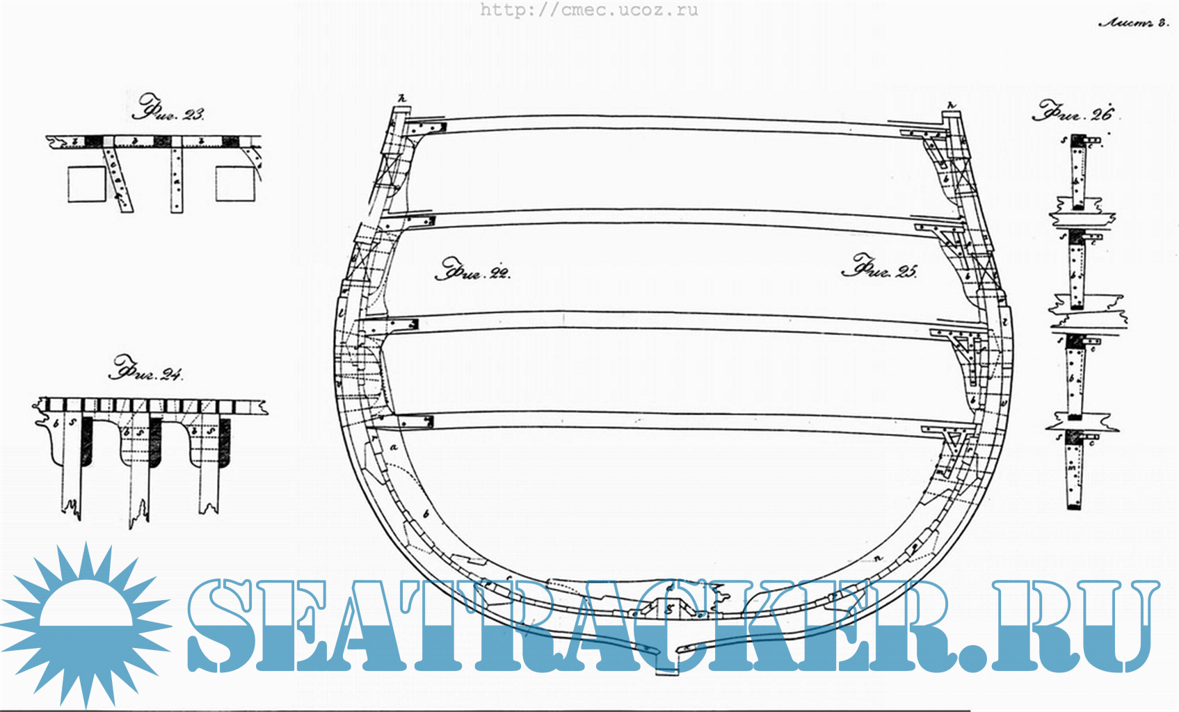 Описание: ...Я изложил общее правило соединения разных главных частей судна, объяснил каким образом сии части между собою связывают и крепят, по прежнему и новому образу строения...