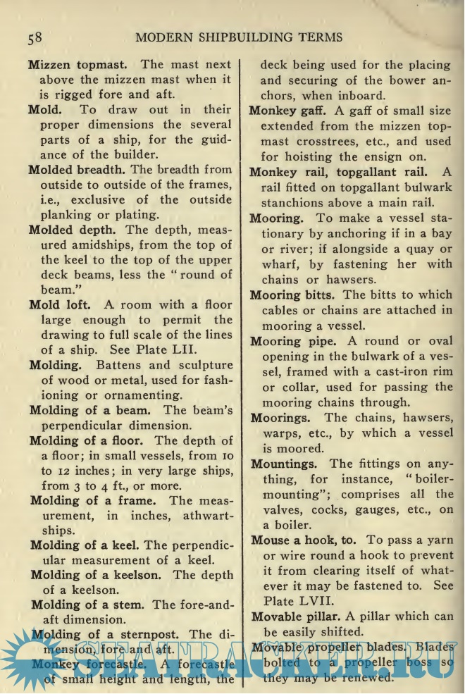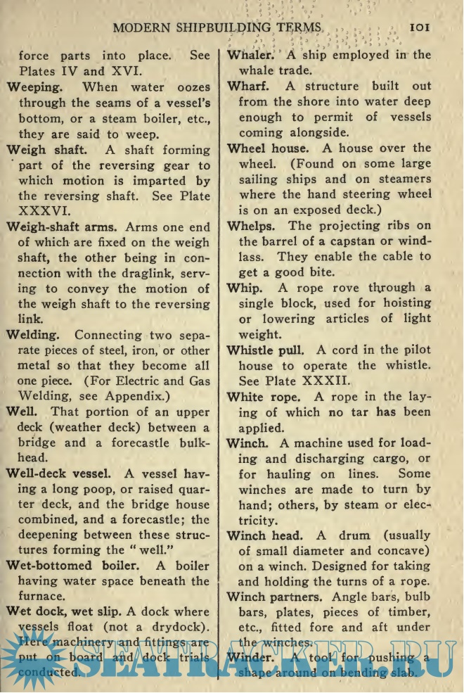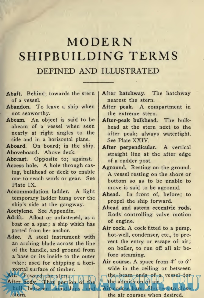 Year: 1918 Language: english Author: F. Forrest Pease Genre: Dictionary Publisher: J.B.Lippincott Company Edition: 1 Format: PDF Quality: Scanned pages Pages count: 254 Description: Glossary: A collection of lists and explanations of abstruse, obsolete, dialectical or technical terms.This glossary gives definitions of many (but by no means all) of the ship/boat construction terms the marine surveyor will find. They relate to the hull only and are mainly those that the author learned when he was an apprentice shipwright. They include some very ancient ones and a few that are now obsolete but were still in use, again, when the author was a shipwright. The glossary is not confined to words used on small wooden or metal pleasure boats as it includes words relating to the construction and survey of vessels built of other materials and also many words relating to the commercial vessels that come within the small craft definition such as barges, coasters, small bulk carriers, tugs and trawlers, dredgers etc. Additional info: This book is the First edition of book, which has been released here