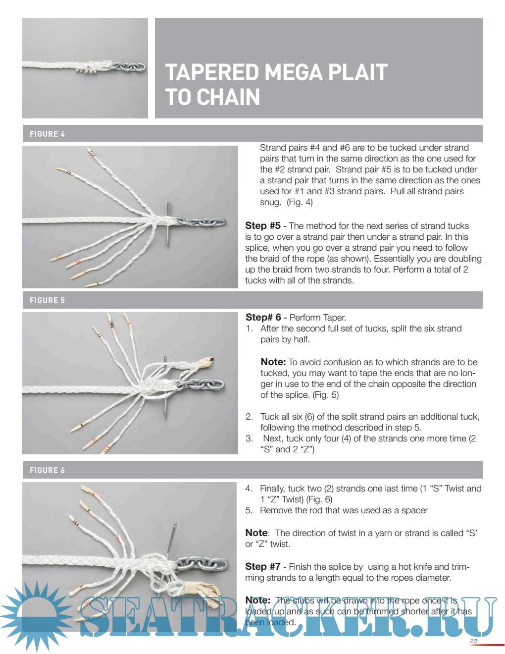 Description: The Splicing Guide released by the well known manufacturer of ropes. It contains useful and interesting information on splicing, single and double braids, braided safety blue and hivee eye splice. tapering the cover on high-tech ropes, mega plait to chain eye splice, three strand, etc.