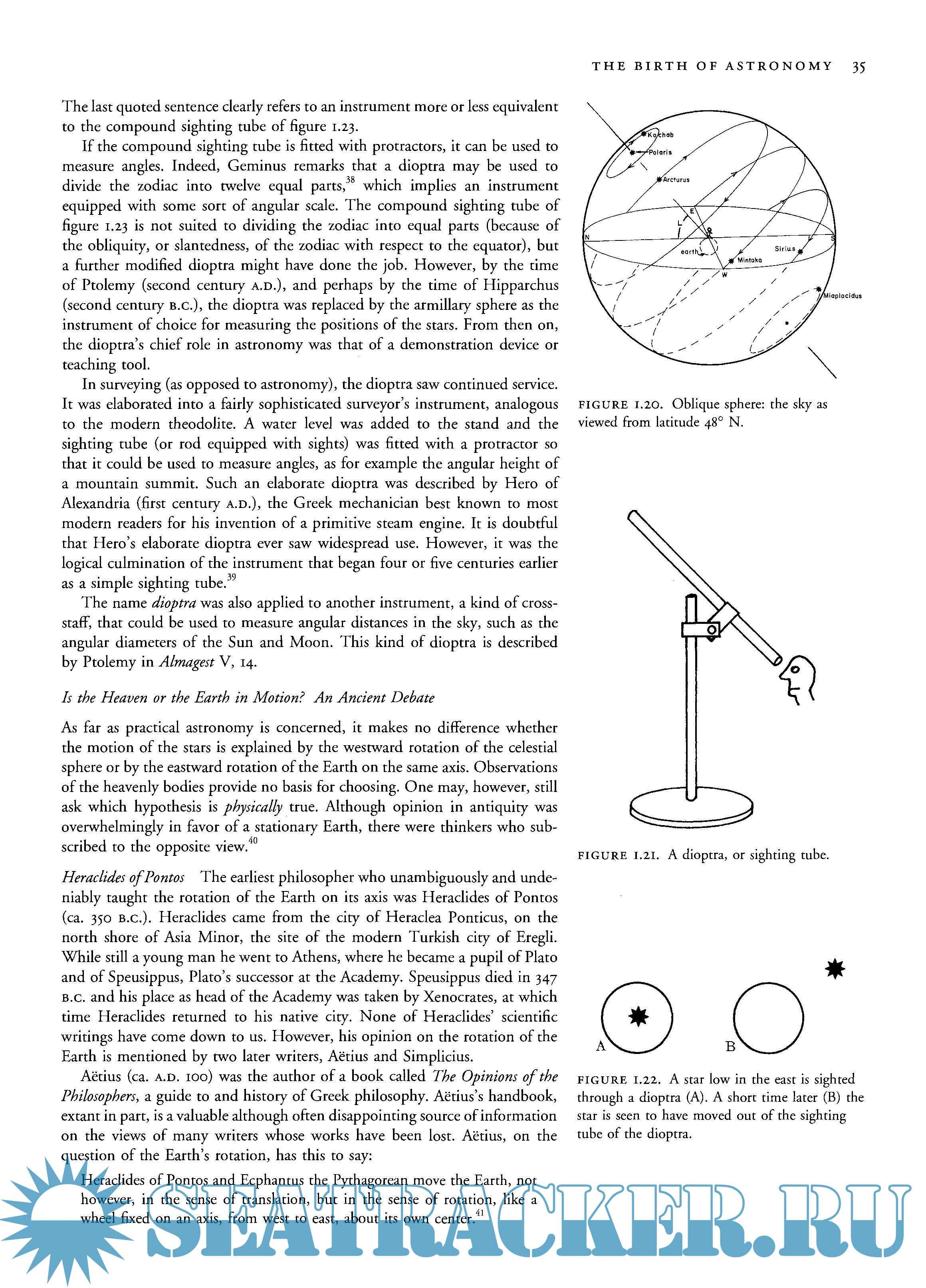 Year: 1998 Language: english Author: James Evans Genre: Handbook Publisher: Oxford University Press ISBN: 978-0-19-509539-5 Format: PDF Quality: OCR without errors Pages count: 495 Description: The History and Practice of Ancient Astronomy combines new scholarship with hands-on science to bring readers into direct contact with the work of ancient astronomers. While tracing ideas from ancient Babylon to sixteenth-century Europe, the book places its greatest emphasis on the Greek period, when astronomers developed the geometric and philosophical ideas that have determined the subsequent character of Western astronomy. The author approaches this history through the concrete details of ancient astronomical practice. Carefully organized and generously illustrated, the book can teach readers how to do real astronomy using the methods of ancient astronomers. For example, readers will learn to predict the next retrograde motion of Jupiter using either the arithmetical methods of the Babylonians or the geometric methods of Ptolemy. They will learn how to use an astrolabe and how to design sundials using Greek and Roman techniques. The book also contains supplementary exercises and patterns for making some working astronomical instruments, including an astrolabe and an equatorium. More than a presentation of astronomical methods, the book provides a critical look at the evidence used to reconstruct ancient astronomy. It includes extensive excerpts from ancient texts, meticulous documentation, and lively discussions of the role of astronomy in the various cultures. Accessible to a wide audience, this book will appeal to anyone interested in how our understanding of our place in the universe has changed and developed, from ancient times through the Renaissance.